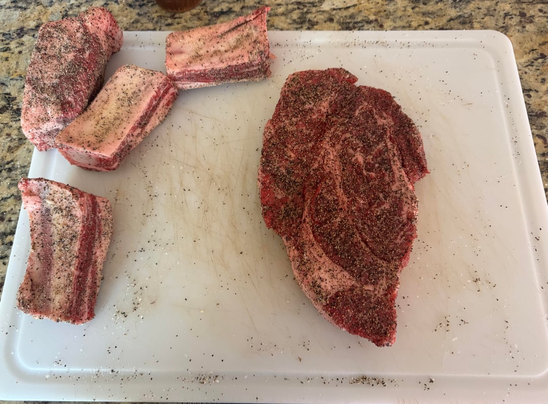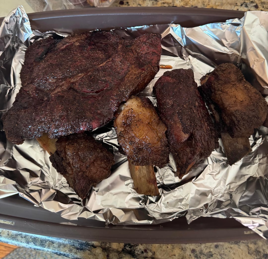 We smoked our short ribs and chuck on a rack over a pan with the consume underneath 👌 just something to consider when you get this requested on your daughter’s next visit.