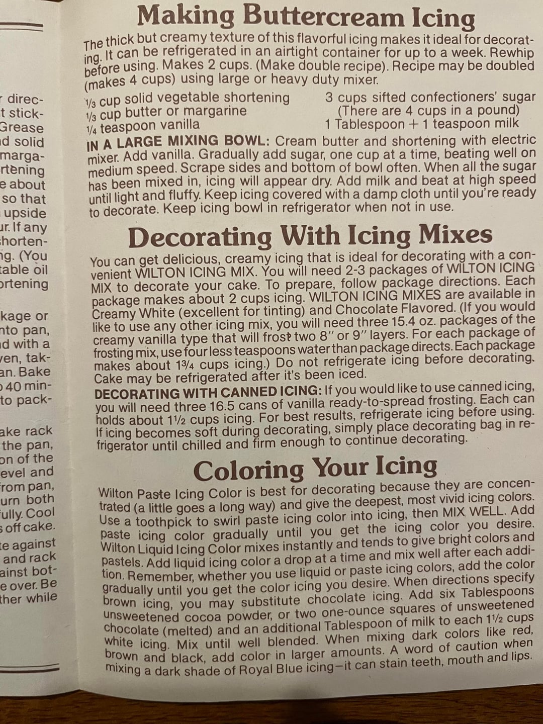 Wilton Buttercream recipe and a few Cake pans from the 1980s