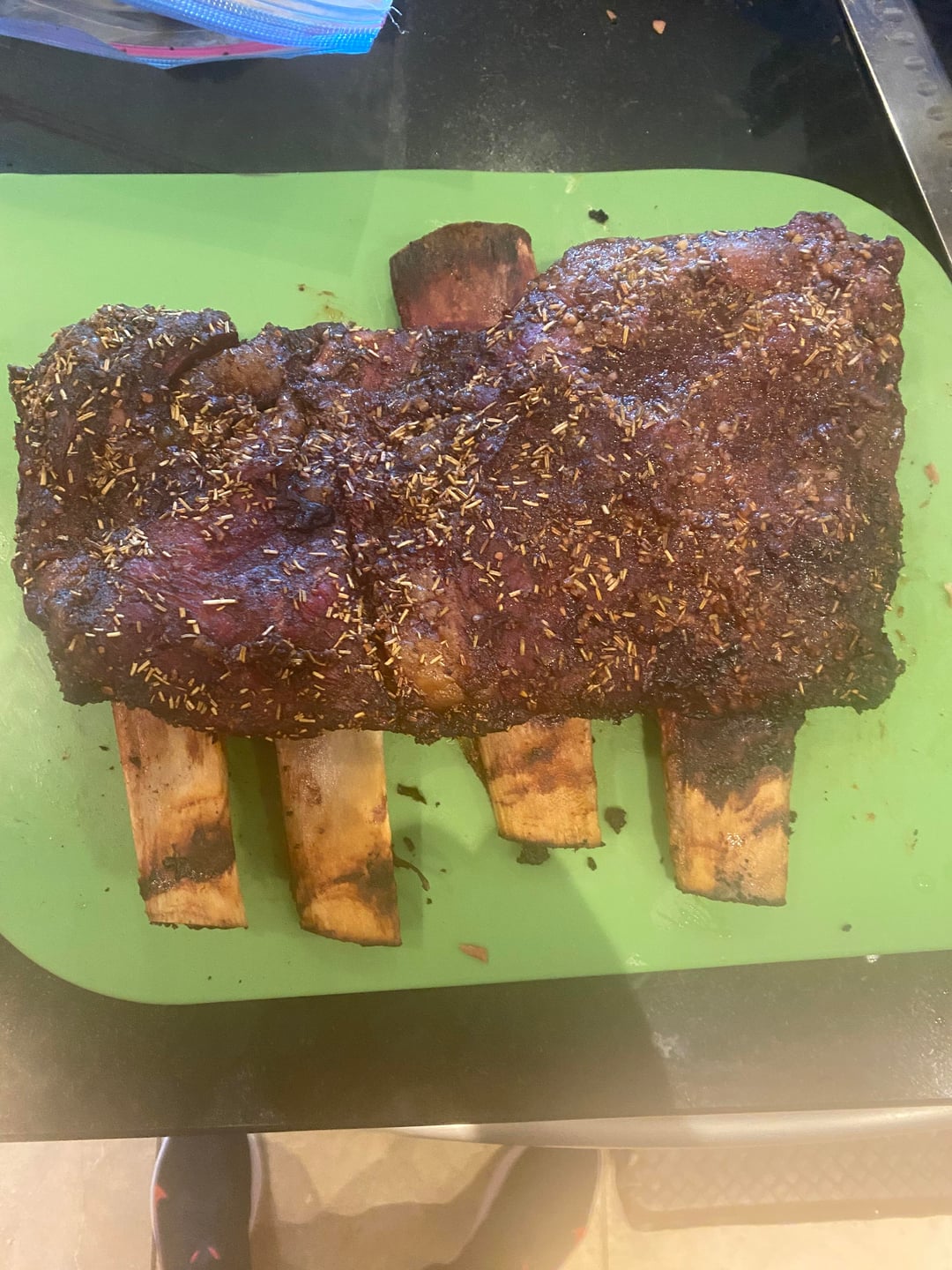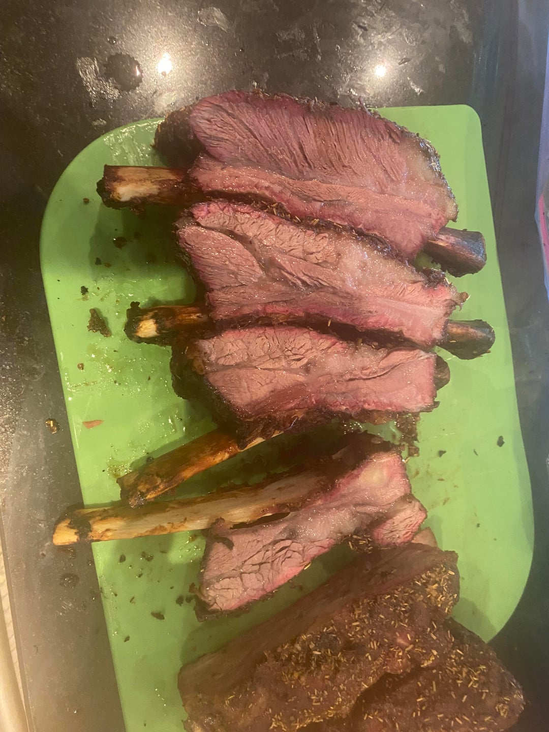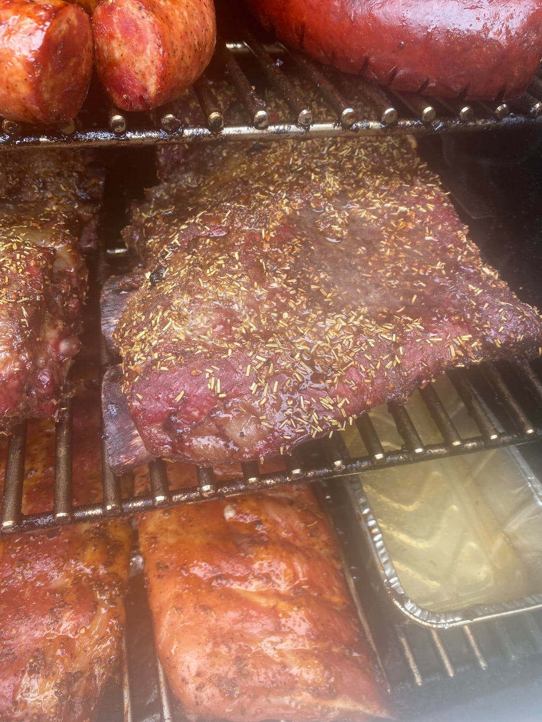 My first effort at smoking beef Dino Ribs. Wow — the flavor’s amazing. Salt, pepper, garlic powder and dried rosemary. 😊by K-Dawg875 4 Comments automatic-theory73 3 days ago Ok, couple questions. Why would you put rosemary on beef and why are those sausages so big? Church_R 3 days ago There’s a reason you don’t see people using herbs in BBQ rubs. The oils in them don’t survive the long cook times. It’s just chemistry.If you’re set on adding rosemary, do it at the very end of the cook, when you pull them off to rest. Capricorn1960 3 days ago When’s Supper I take some brisket and sausage and Ribs pooooooooooopin 3 days ago Holy shit what a feast. Hope you filled up and had a great time!