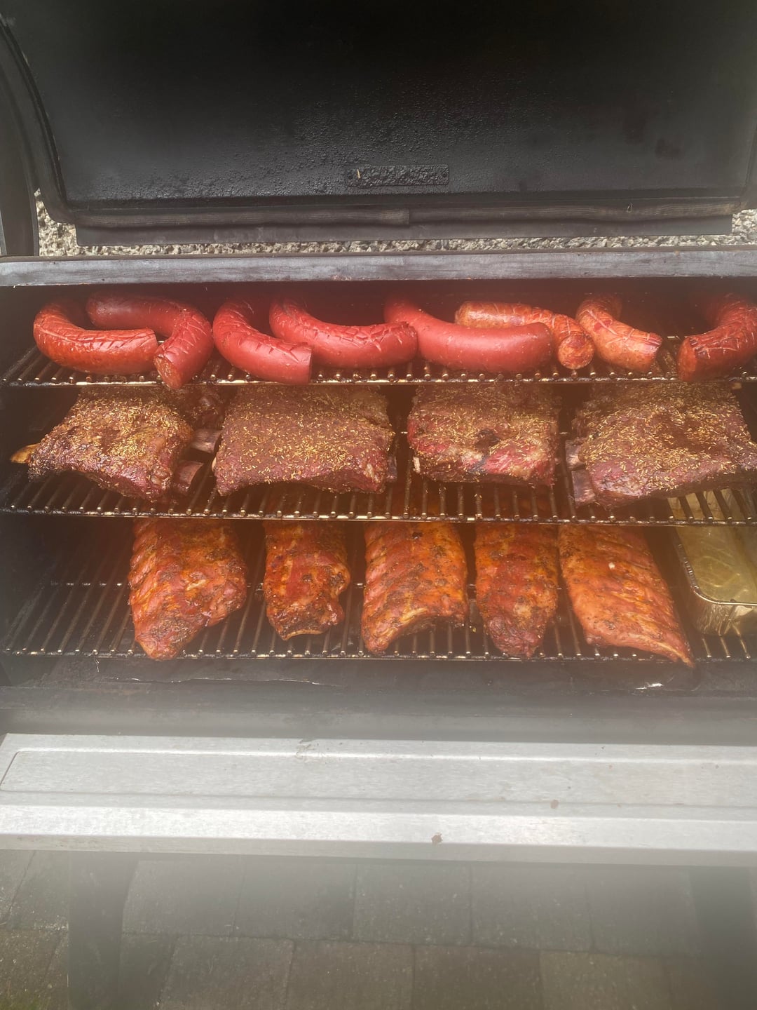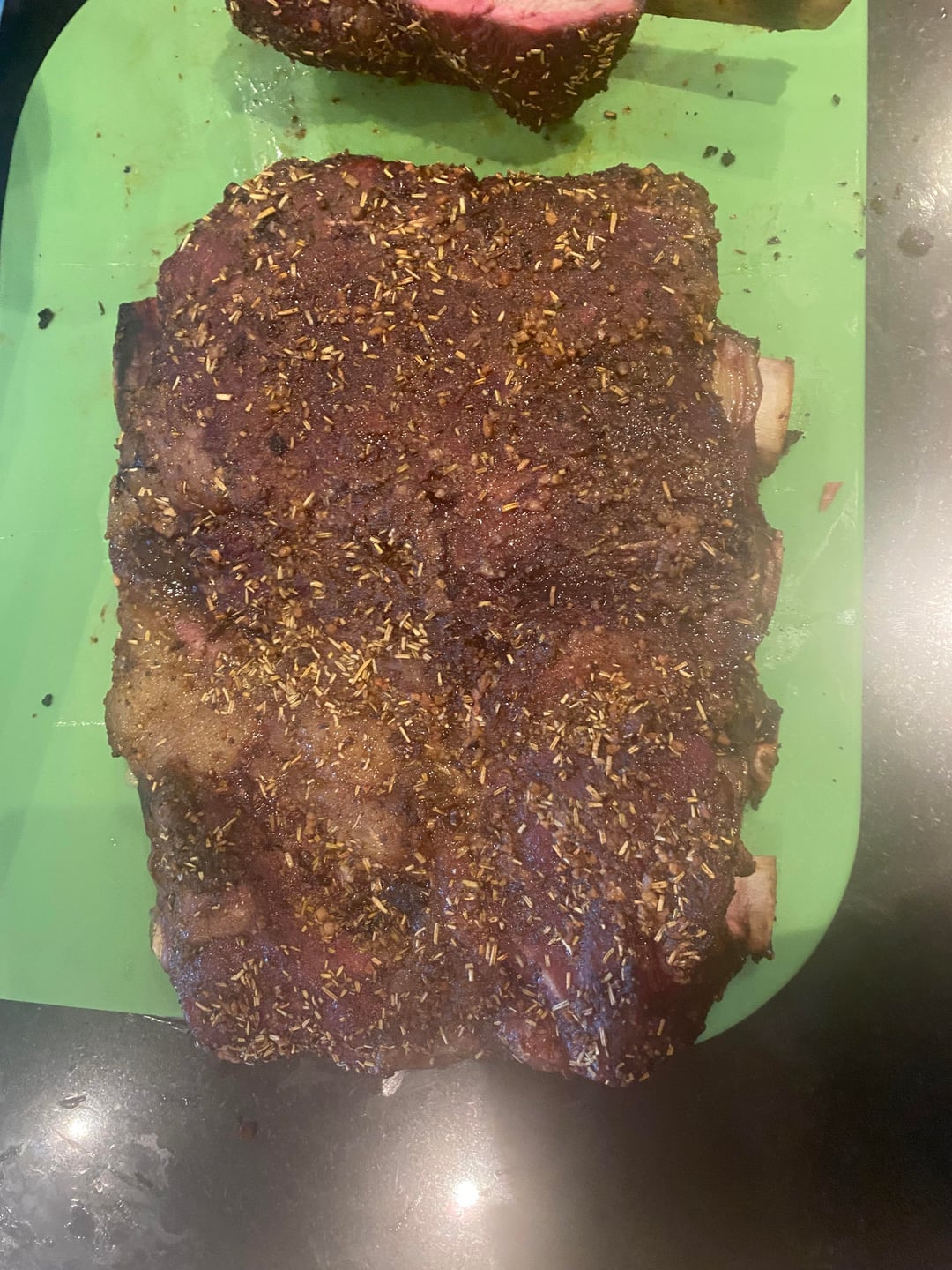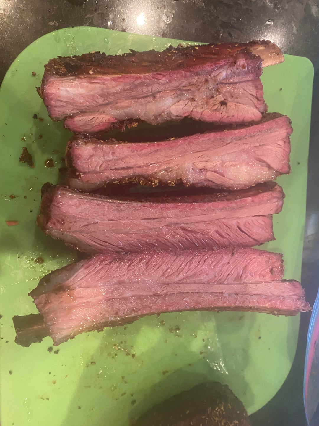 My first effort at smoking beef Dino Ribs. Wow — the flavor’s amazing. Salt, pepper, garlic powder and dried rosemary. 😊by K-Dawg875 4 Comments automatic-theory73 3 days ago Ok, couple questions. Why would you put rosemary on beef and why are those sausages so big? Church_R 3 days ago There’s a reason you don’t see people using herbs in BBQ rubs. The oils in them don’t survive the long cook times. It’s just chemistry.If you’re set on adding rosemary, do it at the very end of the cook, when you pull them off to rest. Capricorn1960 3 days ago When’s Supper I take some brisket and sausage and Ribs pooooooooooopin 3 days ago Holy shit what a feast. Hope you filled up and had a great time!