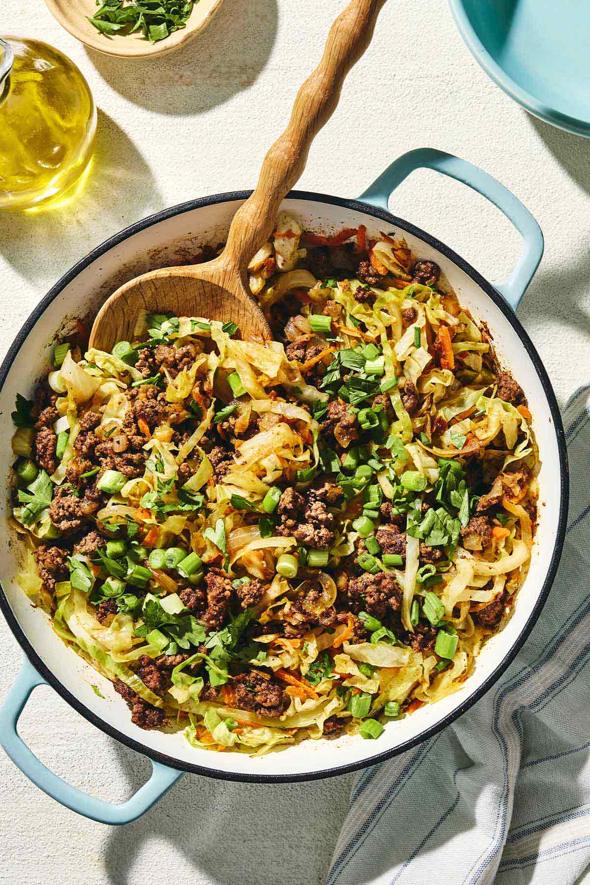 One pound of beef, a whole head of finely shredded cabbage, a bold Middle Eastern spice blend, and one pan, and you’ve got (a low-carb, gluten-free) dinner on the table in 30 minutes! If you do want a carb, serve it over Lebanese rice.
