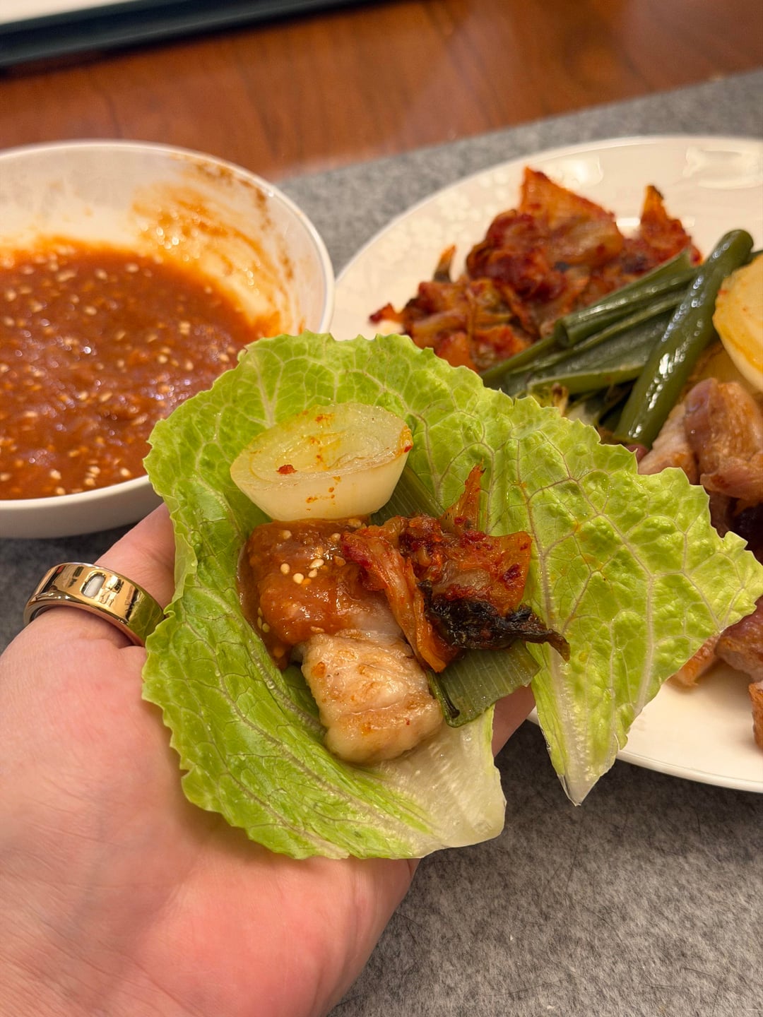 I saw this on IG but if your air fryer comes with multiple inserts, put the pork belly on the wire rack and have the solid tray underneath with veggies. Cook both for about 25 minutes (I set my air fryer to 350) and then cut the belly into small pieces and broil for the last 10 minutes. Wash some lettuce and throw some gochujang/doenjang/garlic/mirin/sesame oil/sesame seeds to make a sauce and make ssam wraps. The tray is a breeze for me to throw in the dishwasher. My house doesn’t reek of kbbq and cleanup was way easier than the usual tabletop grill situation!