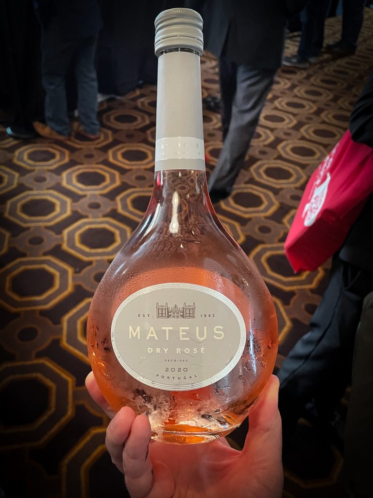 Unsurprisingly, there were some fantastic wines on offer, and most represented almost ridiculous values. I also couldn’t pass up the opportunity to meet an old friend, albeit one that has had an awful lot of “work done” in the 20 years since I last hung out with them. I’m speaking of one of my gateway wines, Mateus, Portugal’s answer to Sutter Home White Zinfandel. Since we last encountered one another, Mateus has gotten quite svelte, in a slimmed-down bottle, that has gone totally clear, the better to showcase the wine’s newly light-pink Provençal style. Mateus has given up sugar, as well, now offering a totally dry face to the world that, frankly, is pretty attractive. While it might seem a little odd to those of us who know Mateus’ age, being able to play with the young hot things on the beach in Ibiza deserves more than grudging respect.