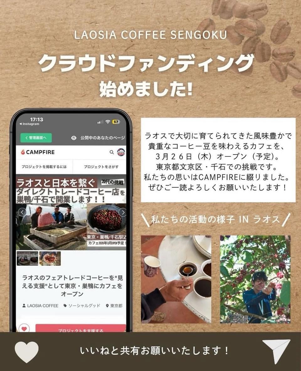 I'm happy to answer any questions about Lao coffee, our work with the farmers, or our journey in opening this cafe in Tokyo! Every bit of support makes a real difference."