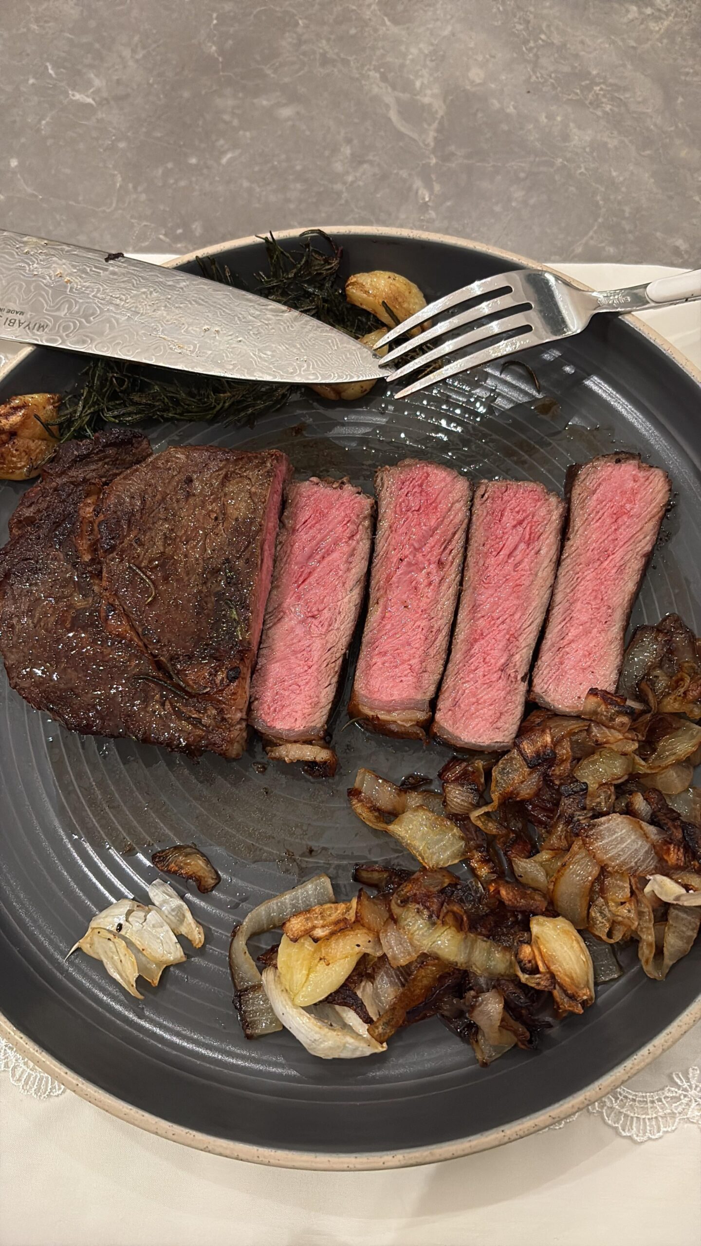 Cooked this on a stainless steel pan normal seasoning with butter rosemary garlic, me and the misses cant agree if this is medium or medium well.by Wide_Contribution735 5 Comments Bogusfloo 1 month ago Looks like medium to me. Looks great! 3PuttD 1 month ago Which does she think it is? That’s the right answer. 😂 blueniko5 1 month ago Not remotely close to medium well lol. Very solid medium/medium rare+ BeardBootsBullets 1 month ago Medium+ cervaca 1 month ago Medium
