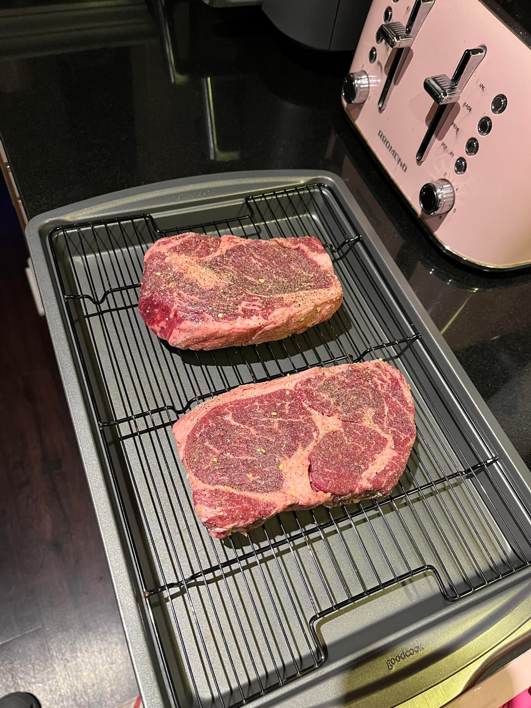 After seasoning I let em sit for about an hour before throwing them in the oven.