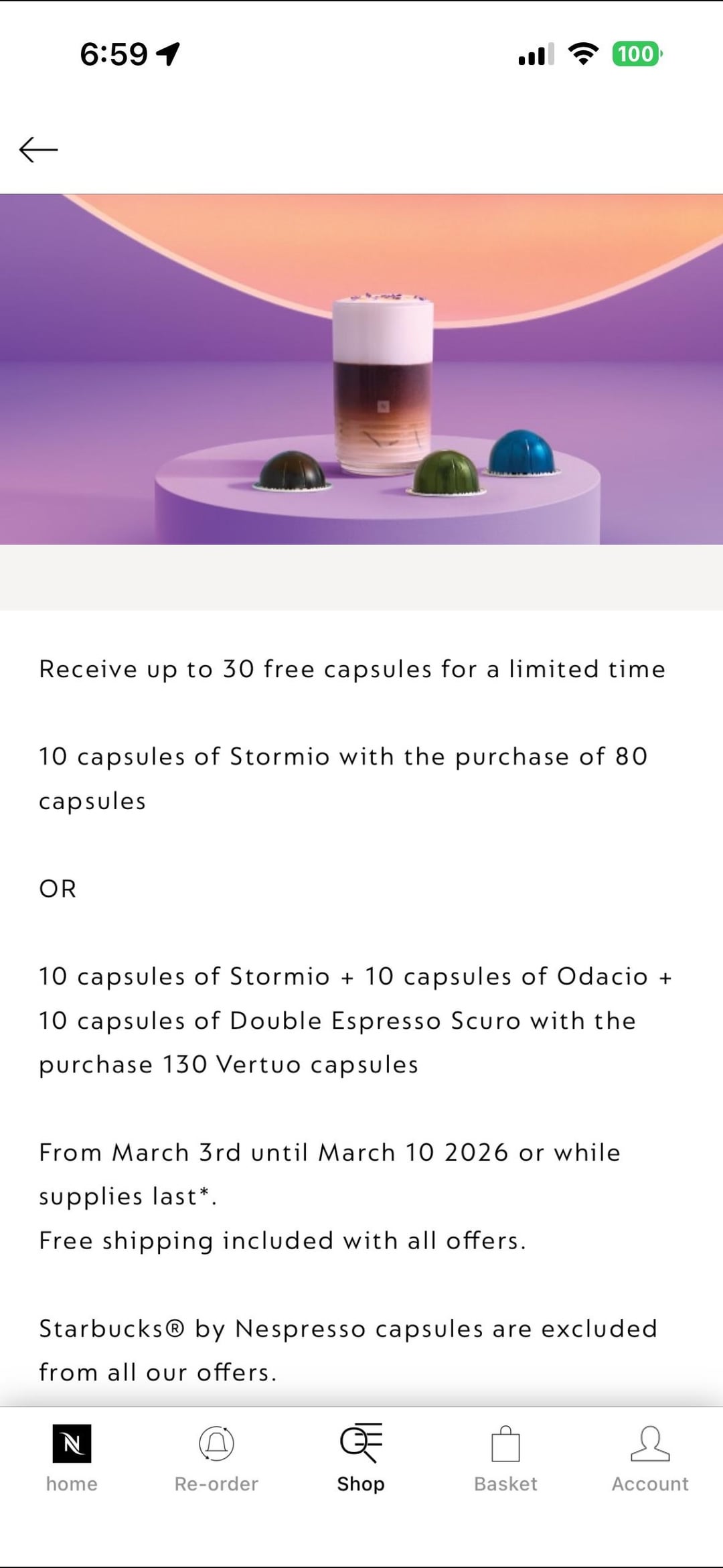The Vertuo offer started on the 3rd of March. The Original Line offer started today.