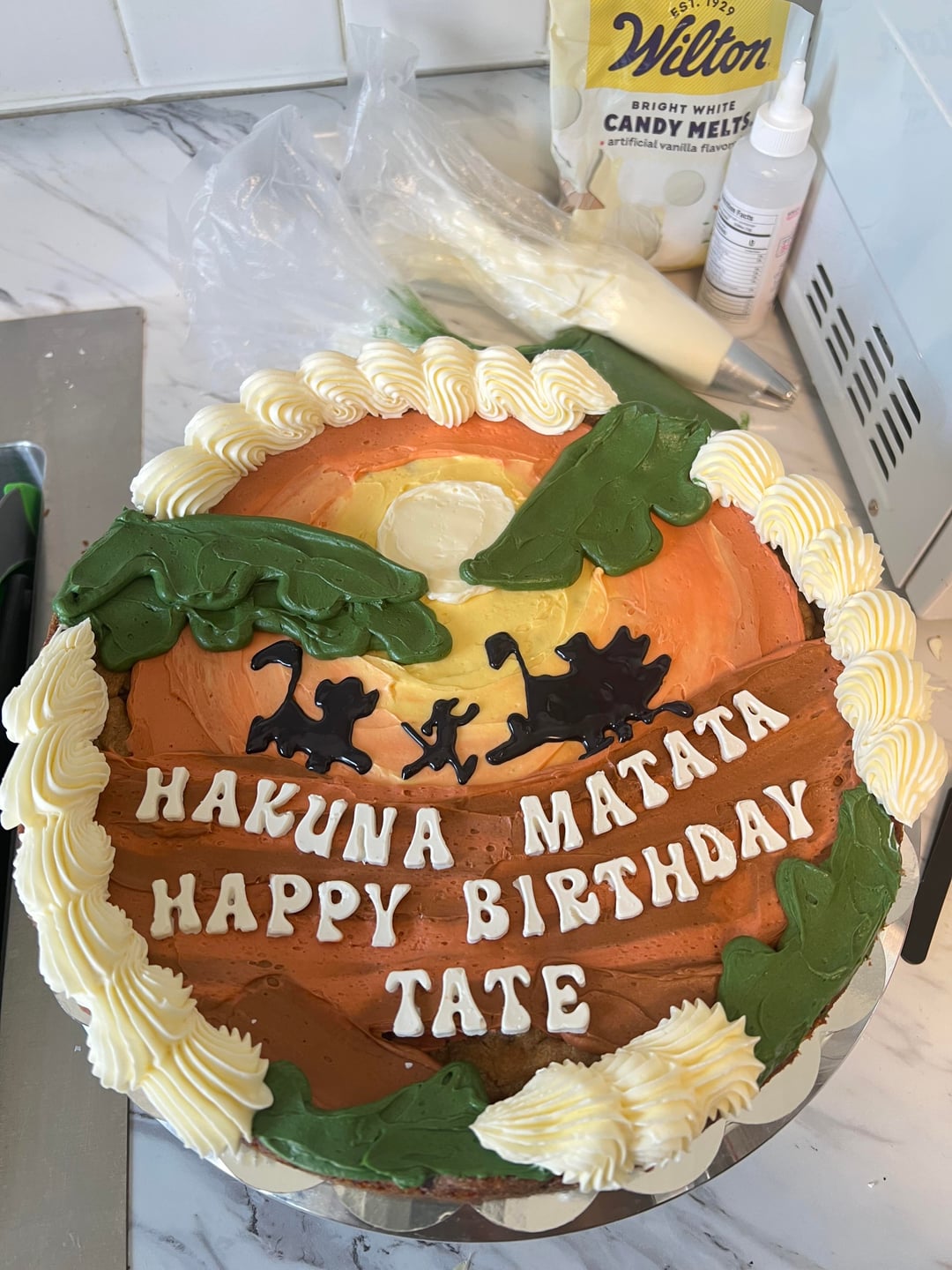 Original set by Lady Celebrations was sent to me by my friend as the request for the theme.The black on the cookie cake is my glaze icing (nobody needs black buttercream). by Stace_face_17 5 Comments Madrock24 1 month ago These are amazing! tindav-2745 1 month ago these look so good. Good job! kswishy 1 month ago Love your work! My fav is the Hakuna Matata one Recycler29 1 month ago Gorgeous! Ok-Material-2266 1 month ago So impressive! Super fun theme too! Love it.