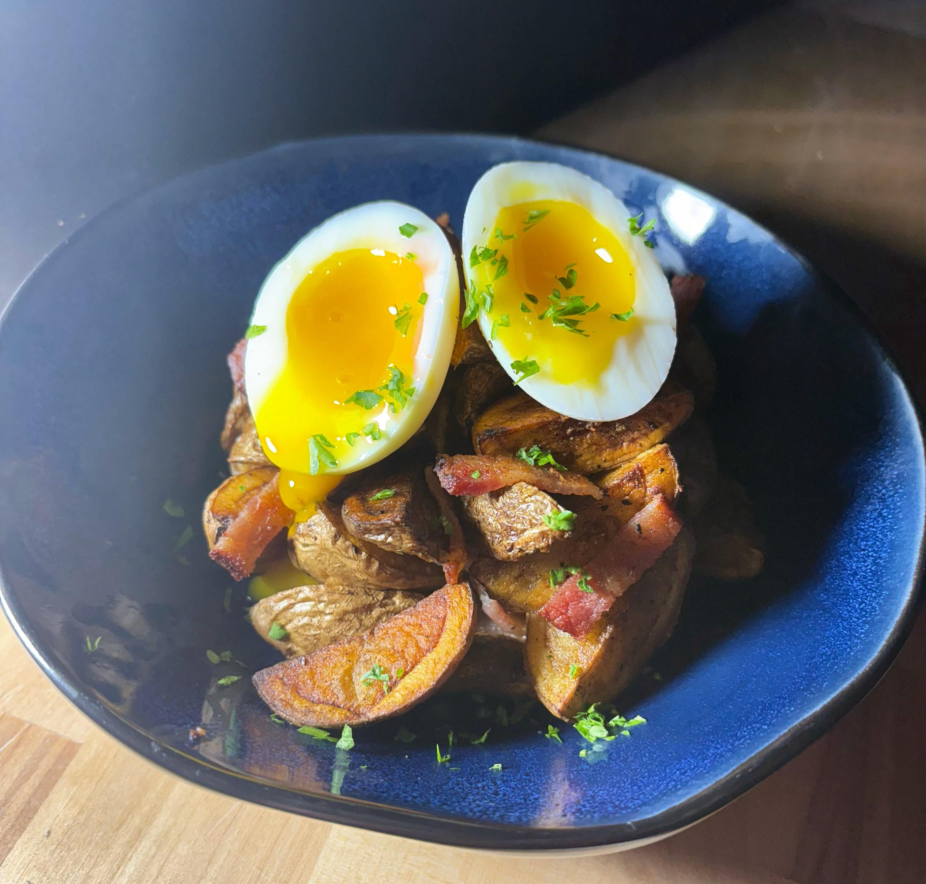 The best part is when the yolk coats the potatoes.