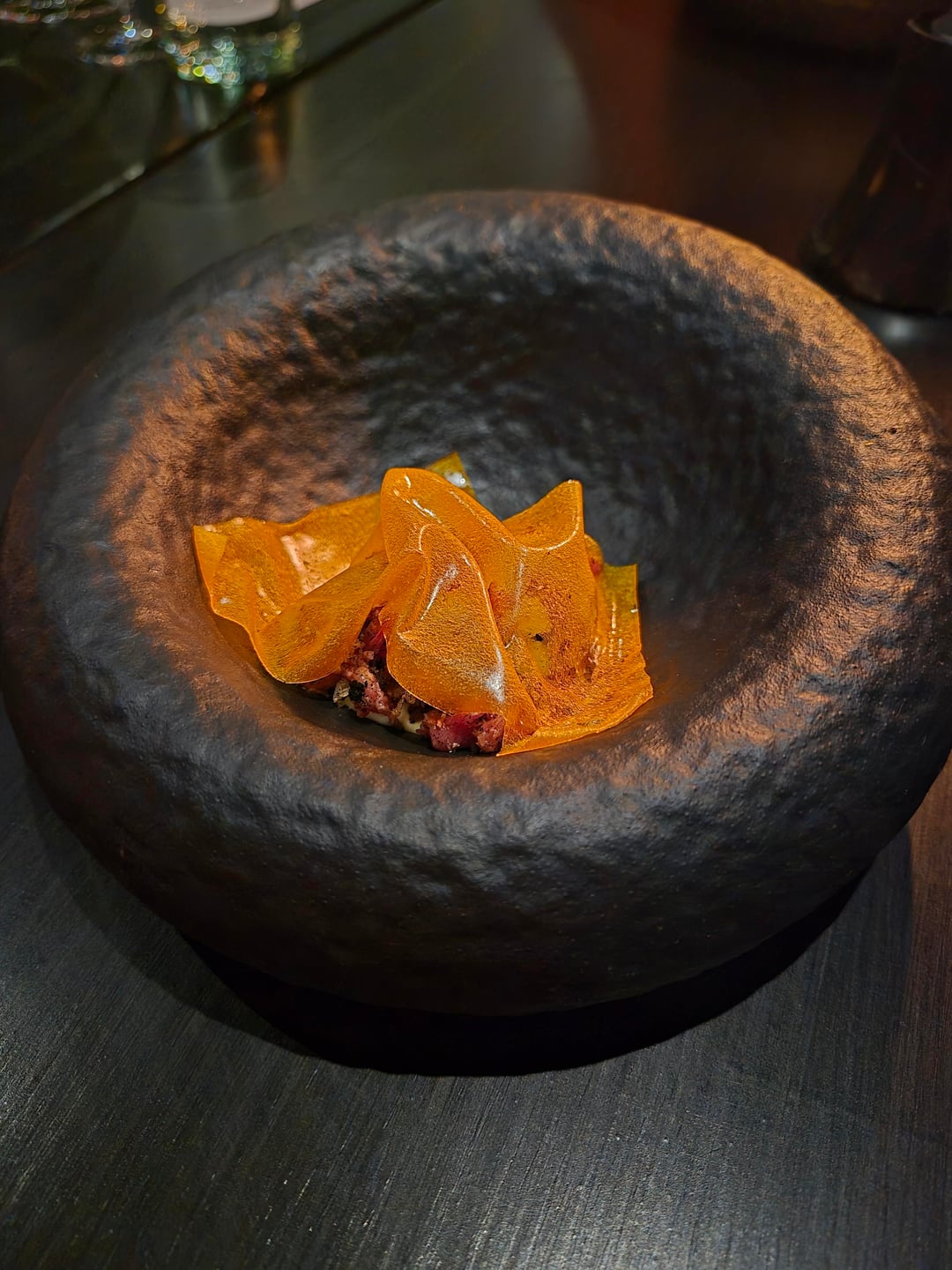 Next was their take on Pisupo, which was a hardened shell of fermented carrot and celery (which we enjoyed cracking with a spoon) covering their sirloin and creme fraiche.