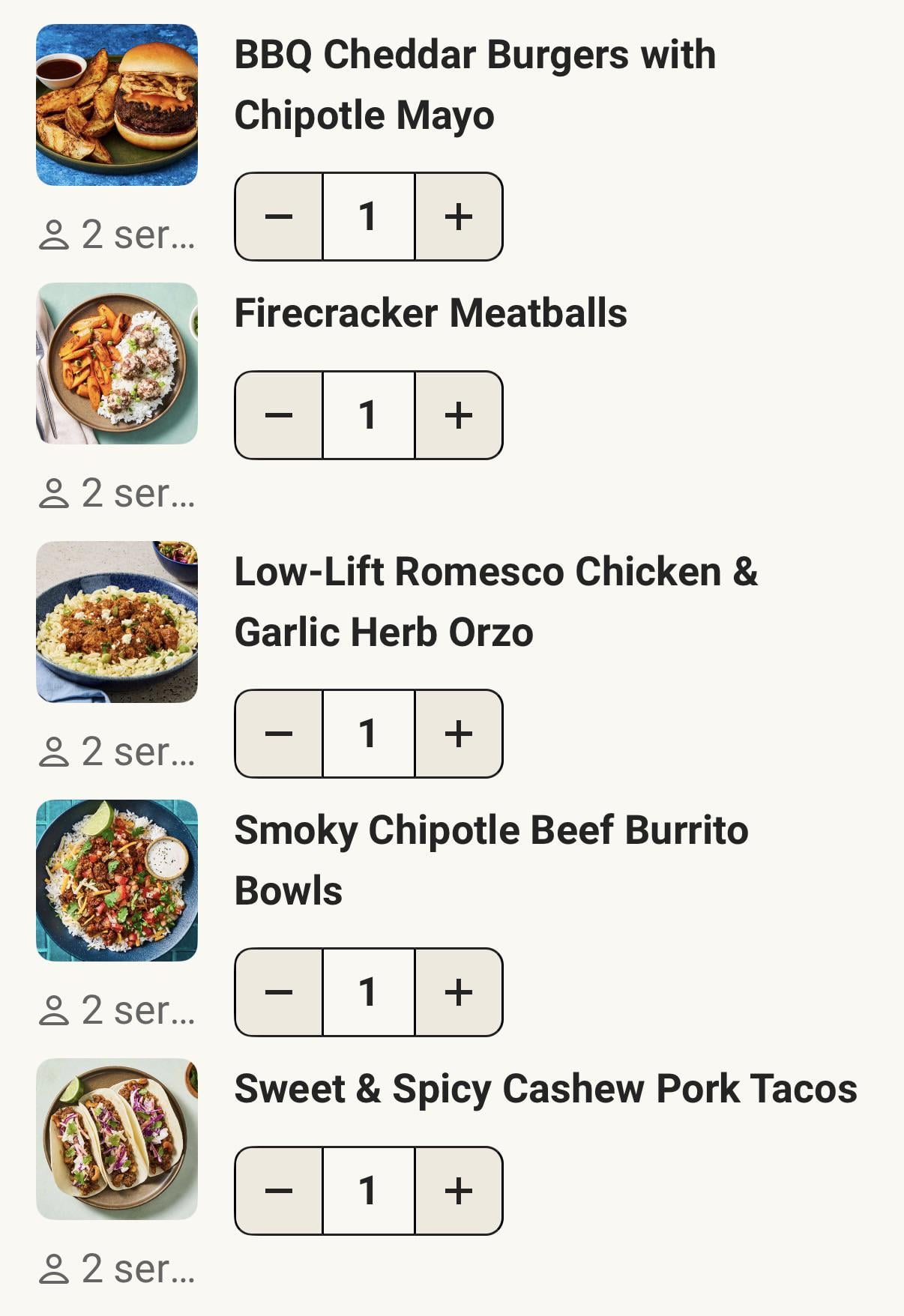 Drop the tacos or the one with orzo. I have trouble getting the orzo right, tacos are usually good but I can eat A LOT of tacos
