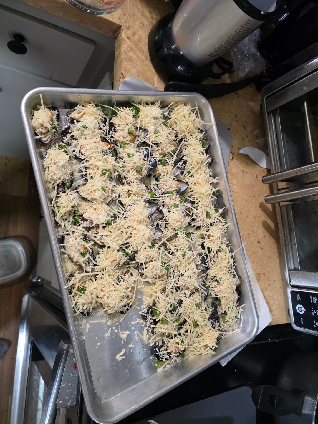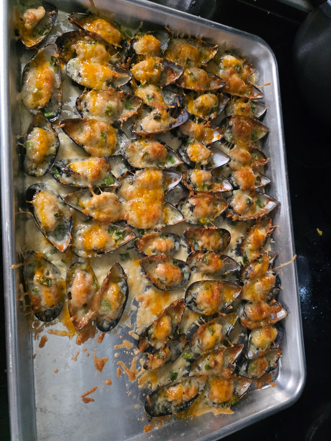 The cheese and mustard (?) has me puzzled. I love mussels though!