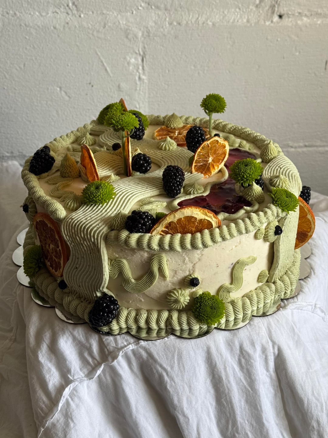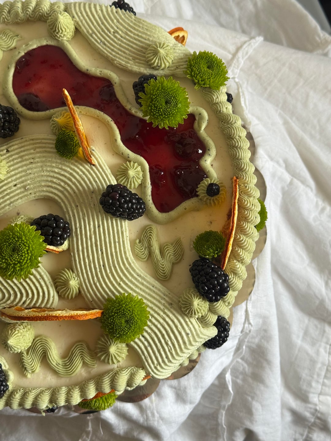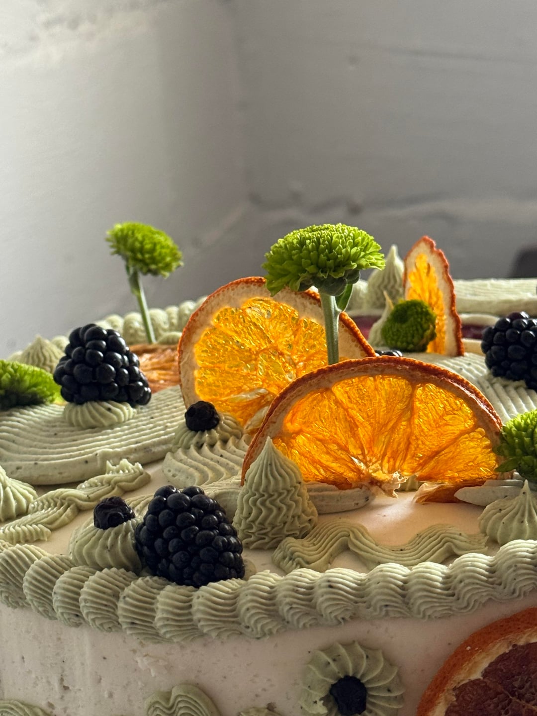 Edible green flowers and dehydrated oranges? Or candied oranges? How did the orange eat?