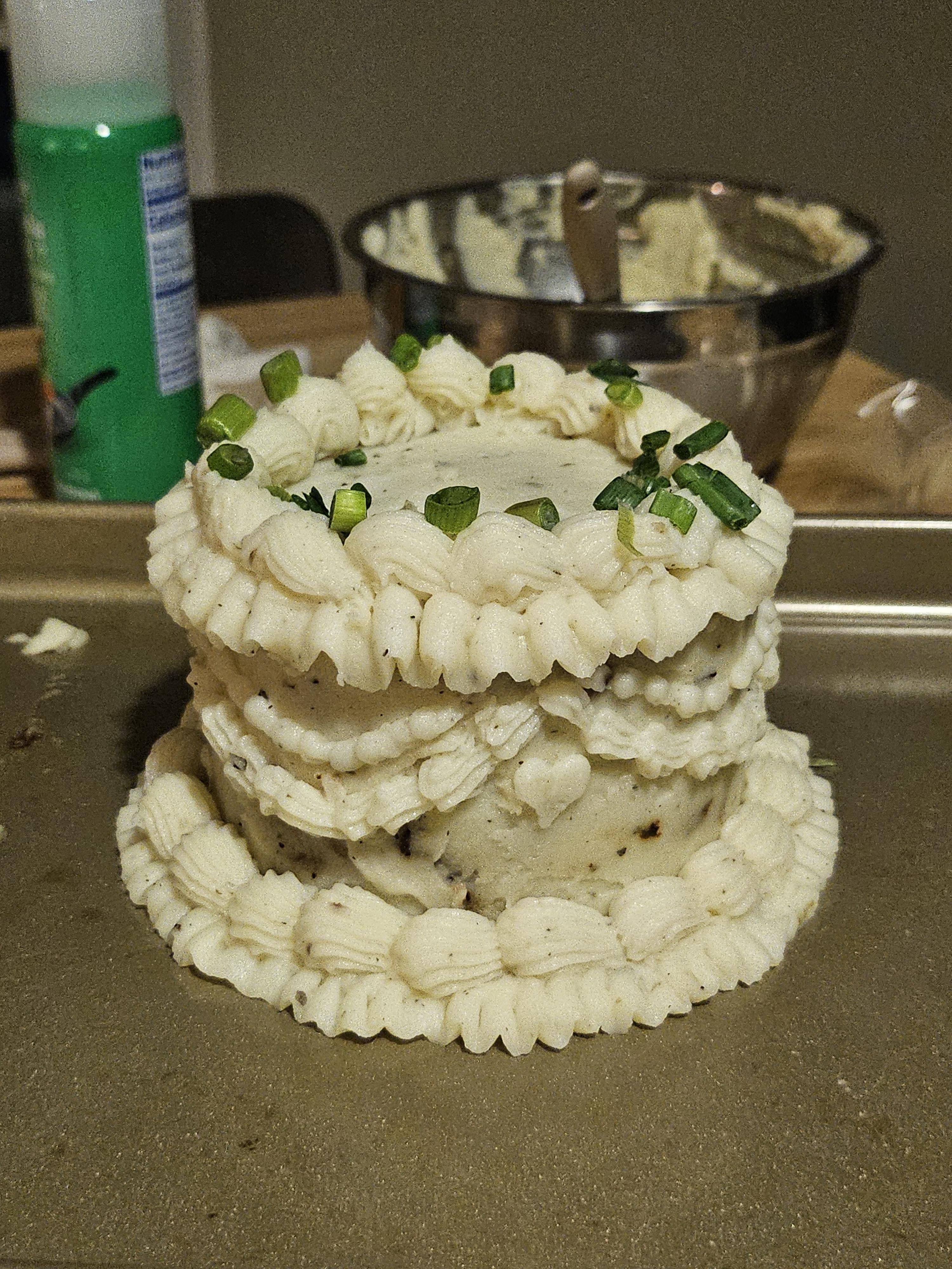 Lmao! I would love that ‘cake’. You did such a great job with potatoes! Yum!