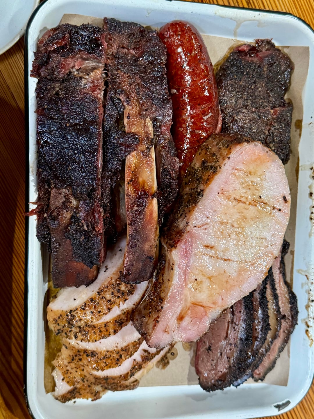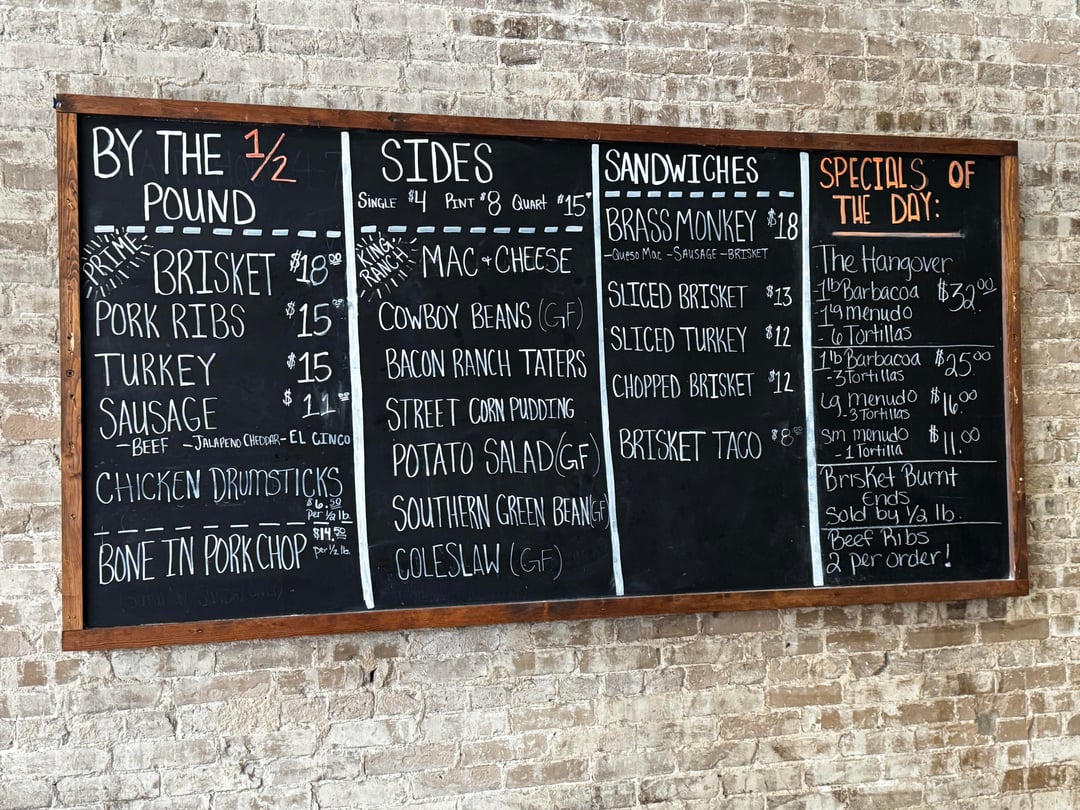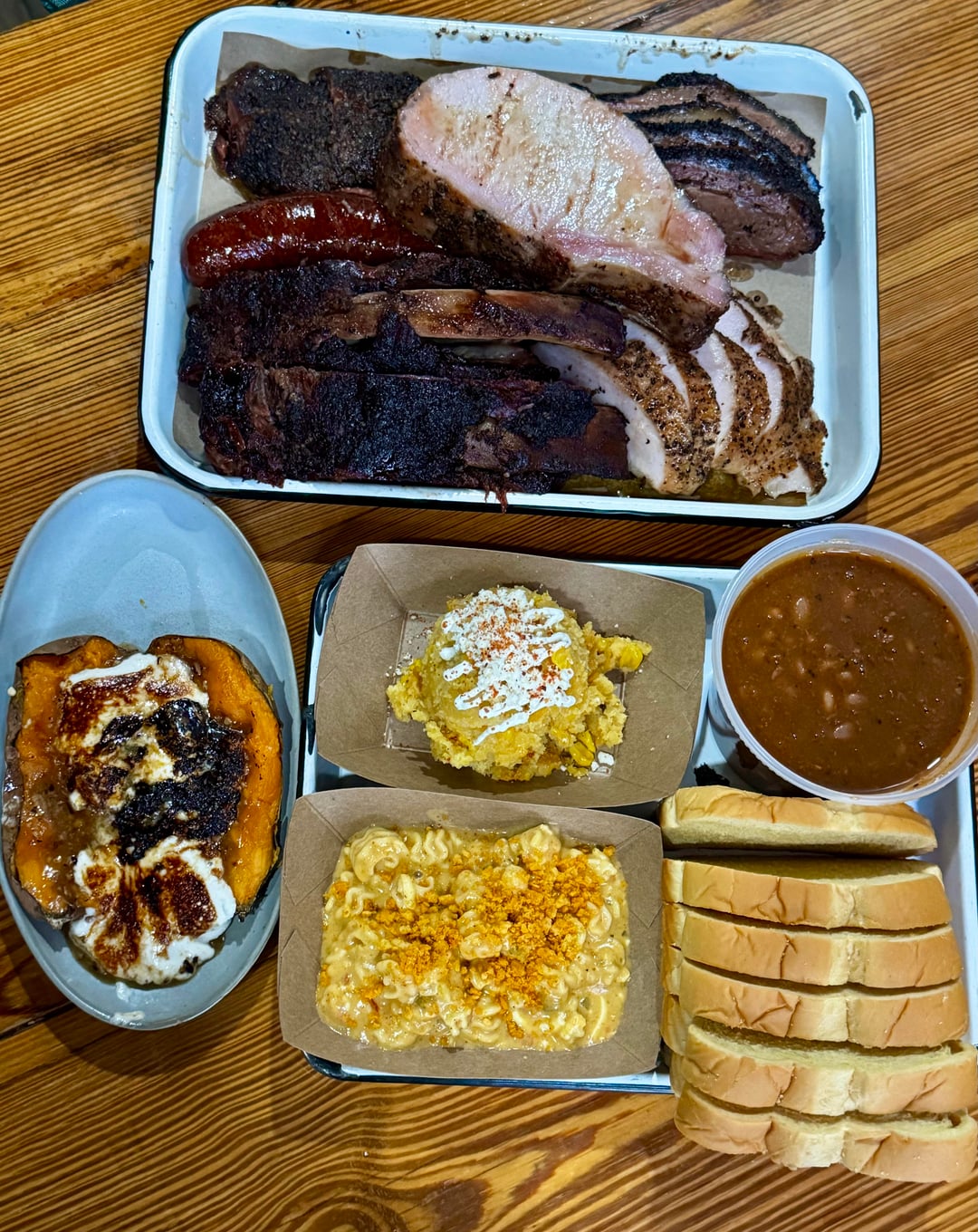 Biggest disappointment was the brisket. They didn’t ask how I wanted it (would’ve said half and half), but it looked like flats were coming out trimmed really tight. Tasted good, but not #1 in TX.