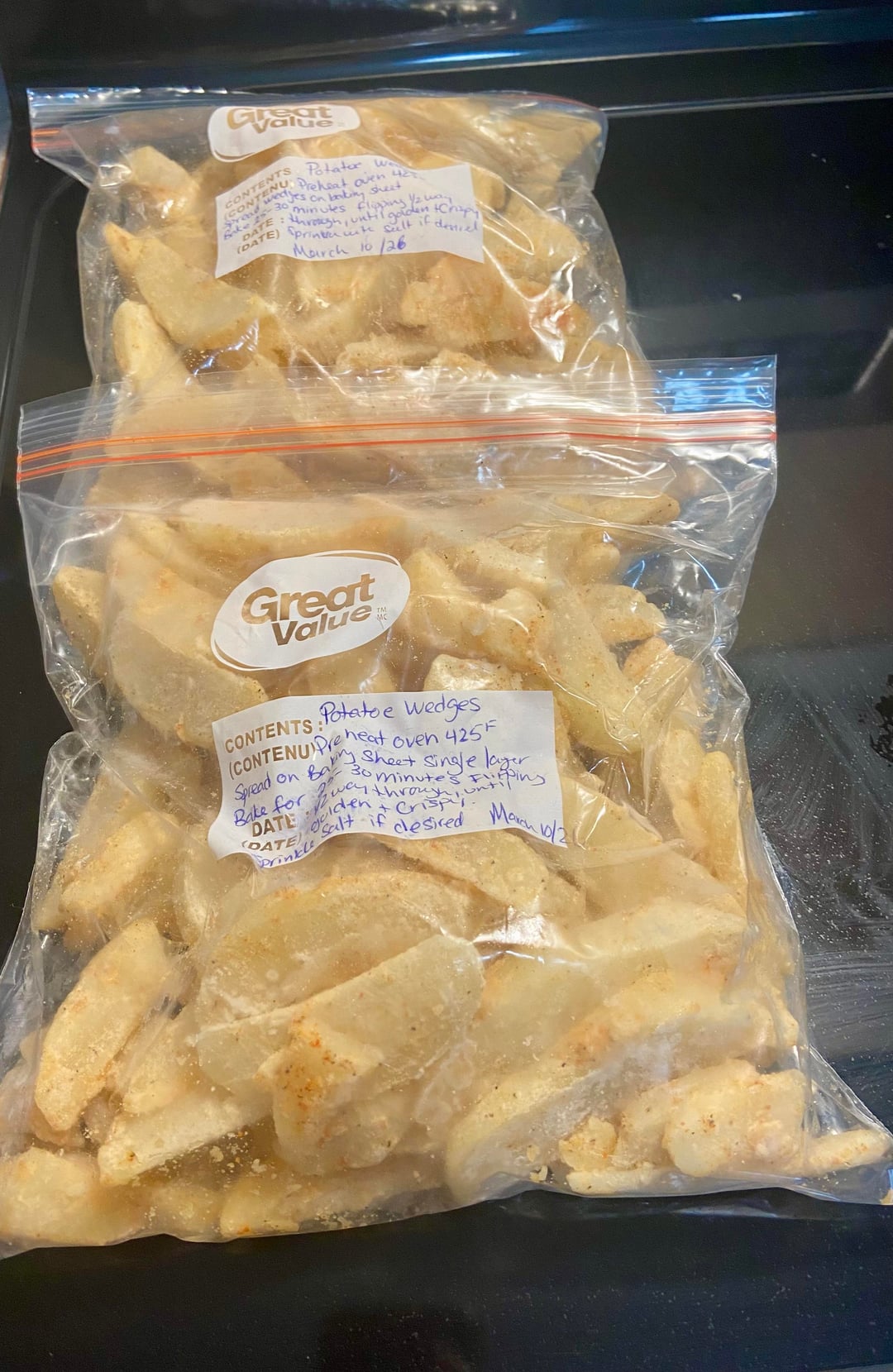I had received a lot of potatoes in my last 2 Flashfood bags and I already have a full bag I bought on sale. So to keep the reduce ones from going to waste I made a large batch of potato wedges to freeze to use when I am ready.