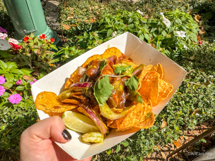 The chips were all coated evenly, which is an impressive feat, and while this definitely does have quite the kick, the salsa verde, onions, and cucumber helped tone it down. We also loved the shrimp on top, though we were skeptical at first!