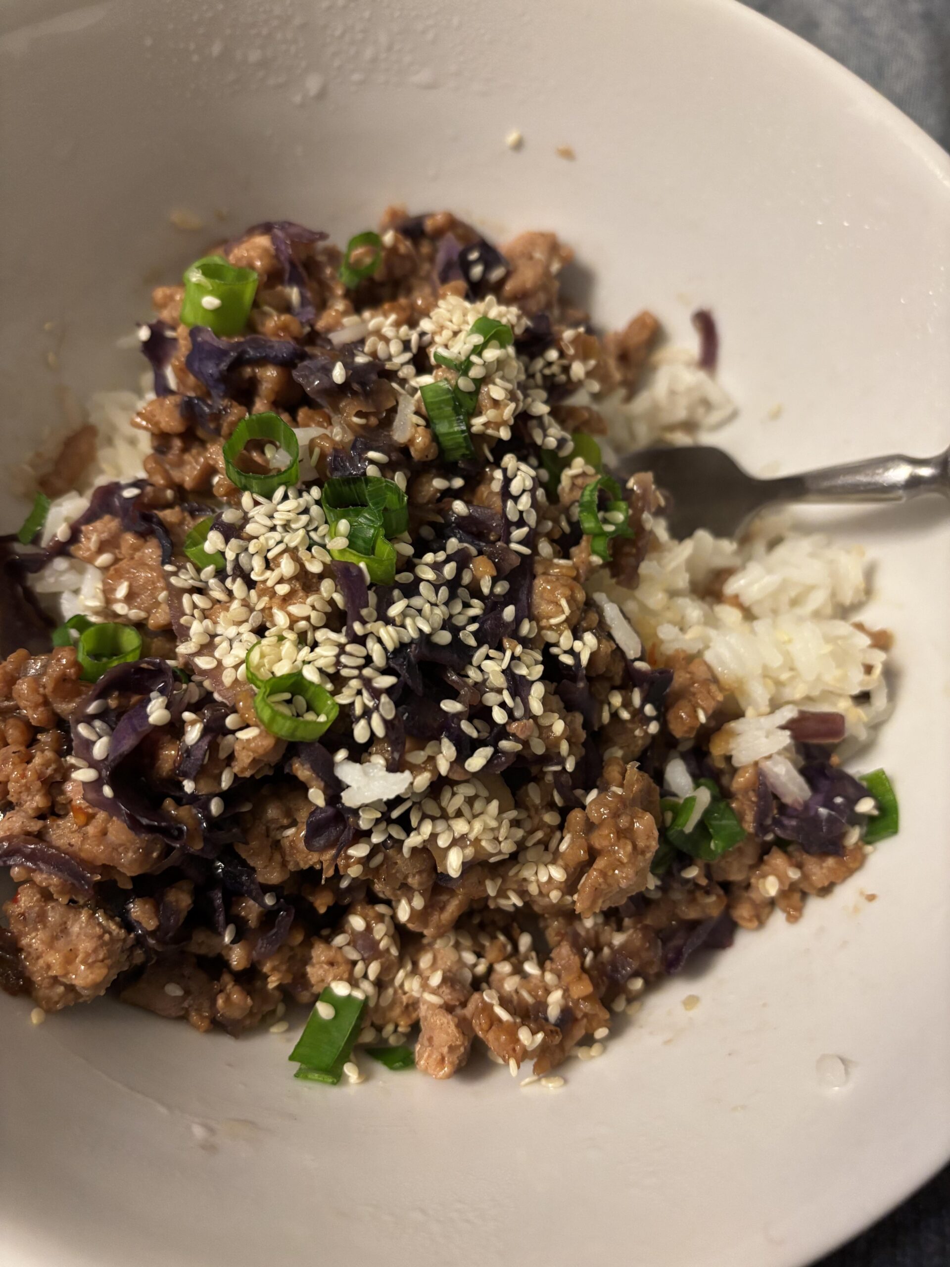 Moo shu pork! Just had it two nights ago, and again today for lunch. So tasty. I add sliced bell pepper a few minutes before the pork.