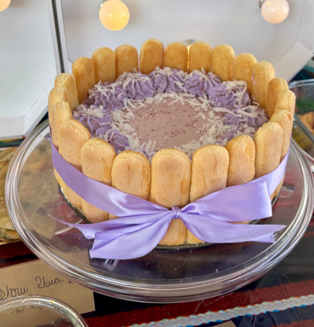 and her birthday cake, ube and white chocolate charlotte! her absolute fav, this is the second year in a row it’s been her cake !