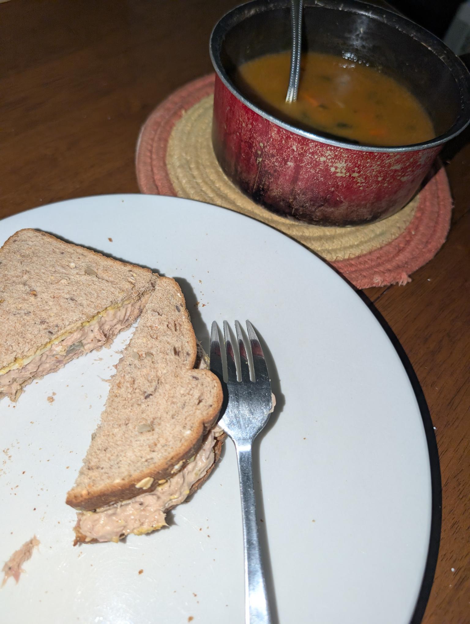 Inspired by some recommendations from this sub so thanks!by South-Range8401 1 Comment South-Range8401 1 day ago Ok this is a complicated recipe so hold onto your butts: Step 1: mix canned tuna with mayonnaise, salt, pepper. Place on bread. Put cheese on top, put in oven at 350. Step 2: open can of soup and put in saucepan. By the time the soup is heated up, the cheese will be almost melted. Enjoy