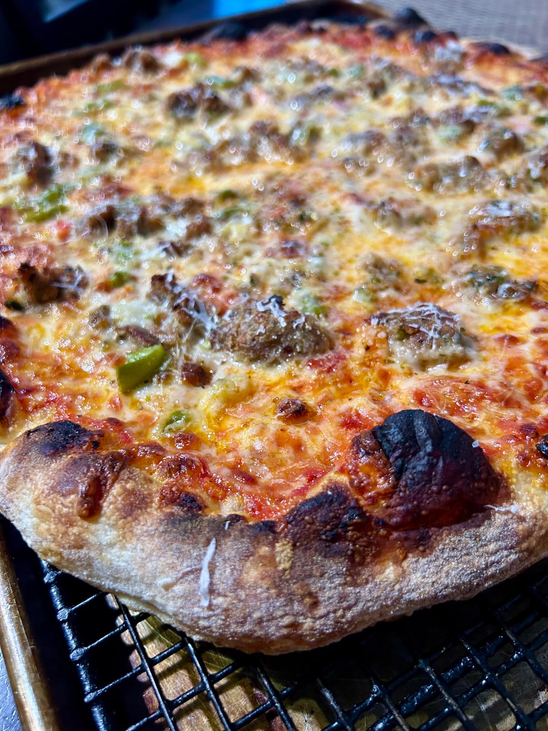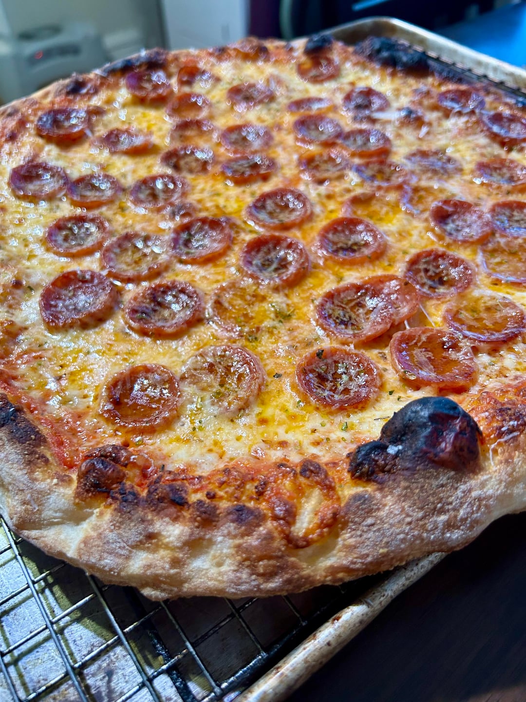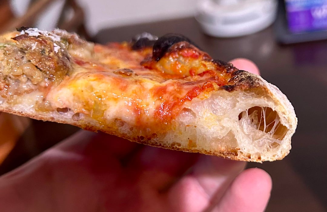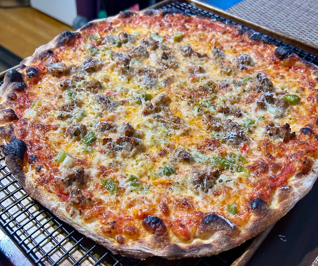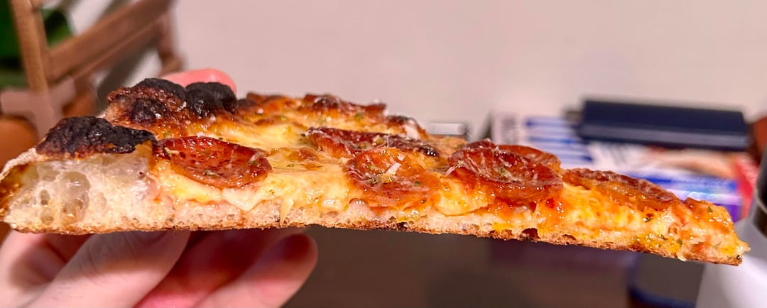 This is about 65% hydration using Caputo Americana flour. Baked in a regular oven. Classic pepperoni and a meatball/giardiniera. Did a 24 hour room temp bulk ferment, then balled and cold fermented for ~72 hours. It had a great texture and a nice crunch. Baked on a pizza steel and finished in the broiler.