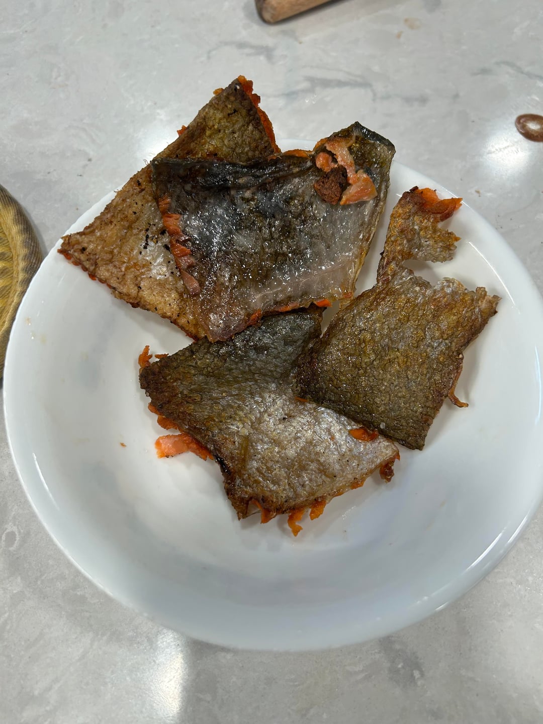 After you crisp the salmon skin, make a tamaki hand roll. Delicious!