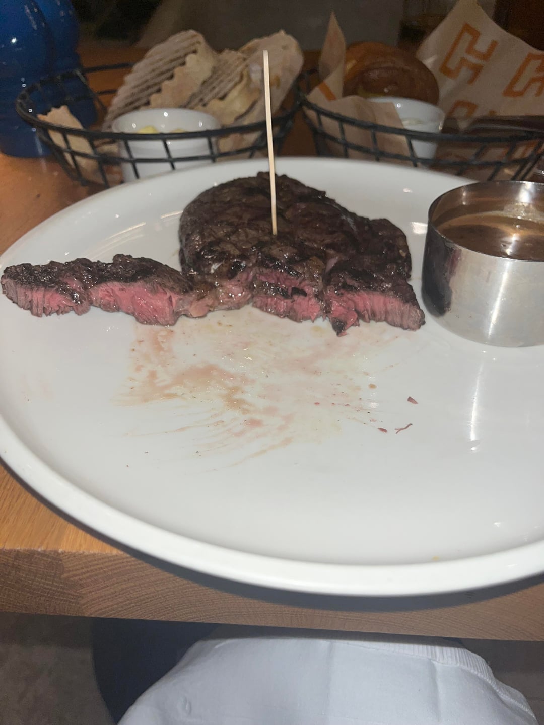 A little overcooked but for a thin steak they did a good job.
