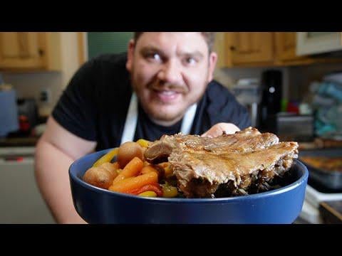 Easy slow cooked ribs and vegetable dinner