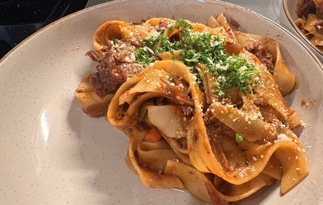 A homemade pappardelle and chuck roast ragu