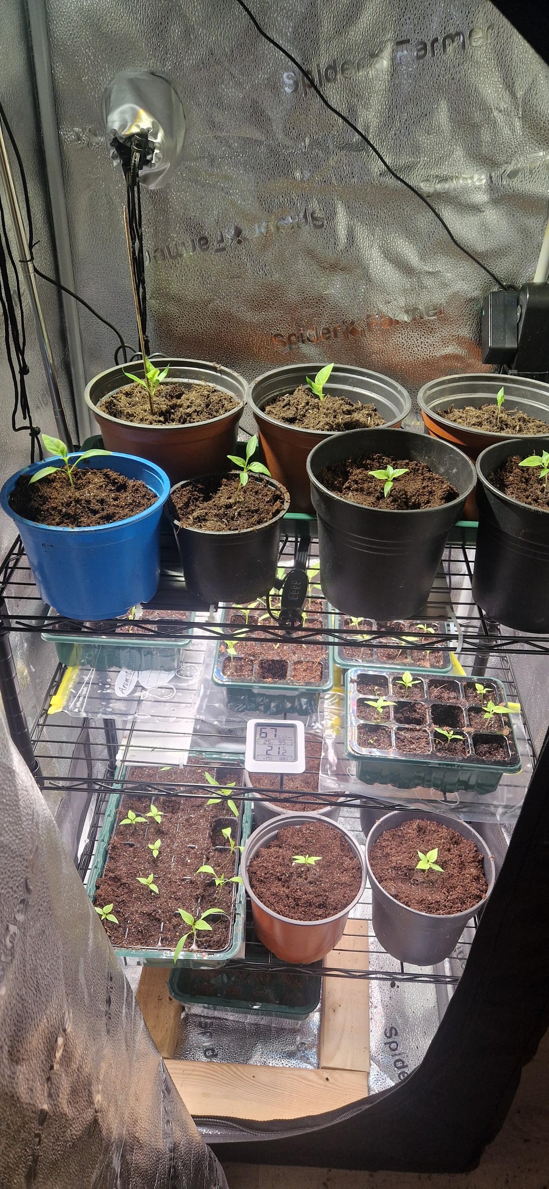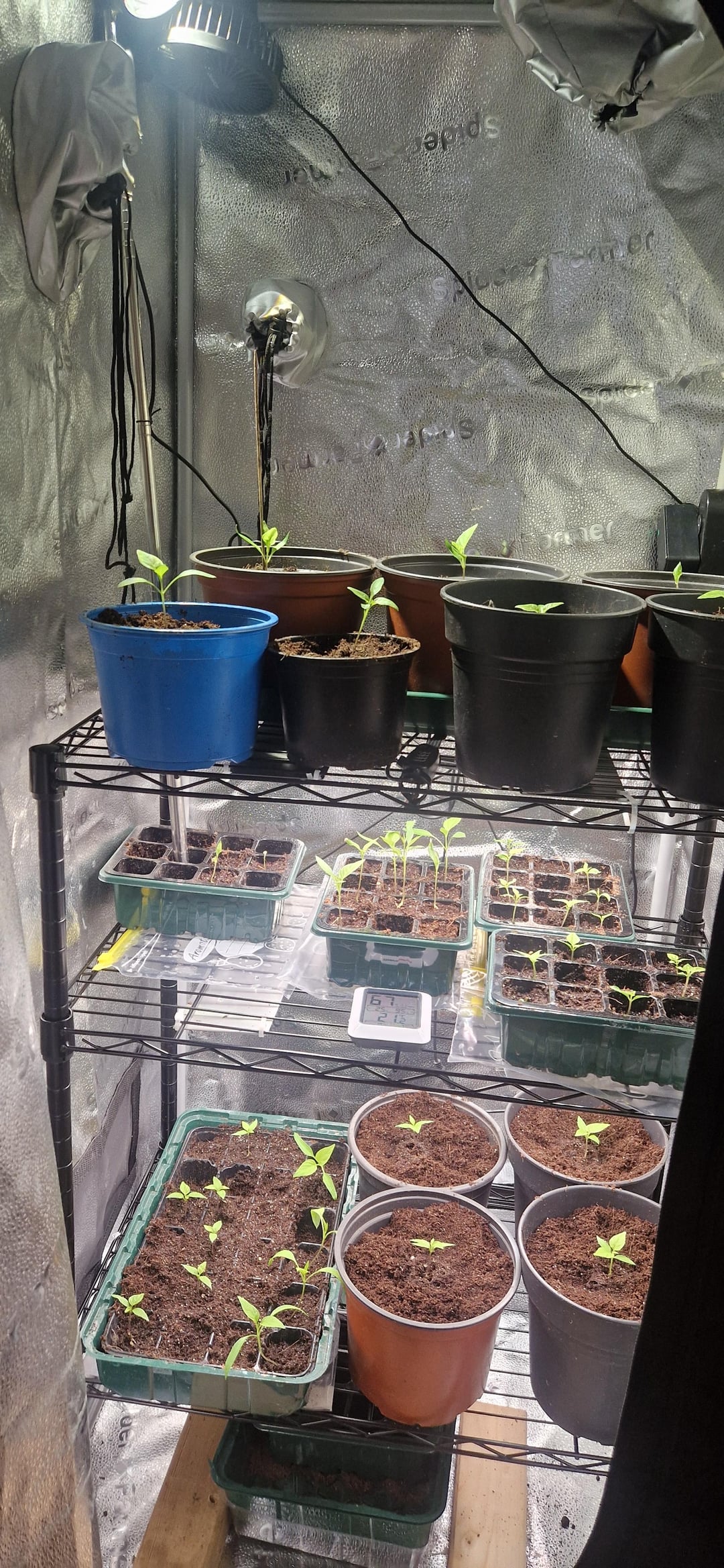 What wattage grow lights are you using? Everything looks very leggy.