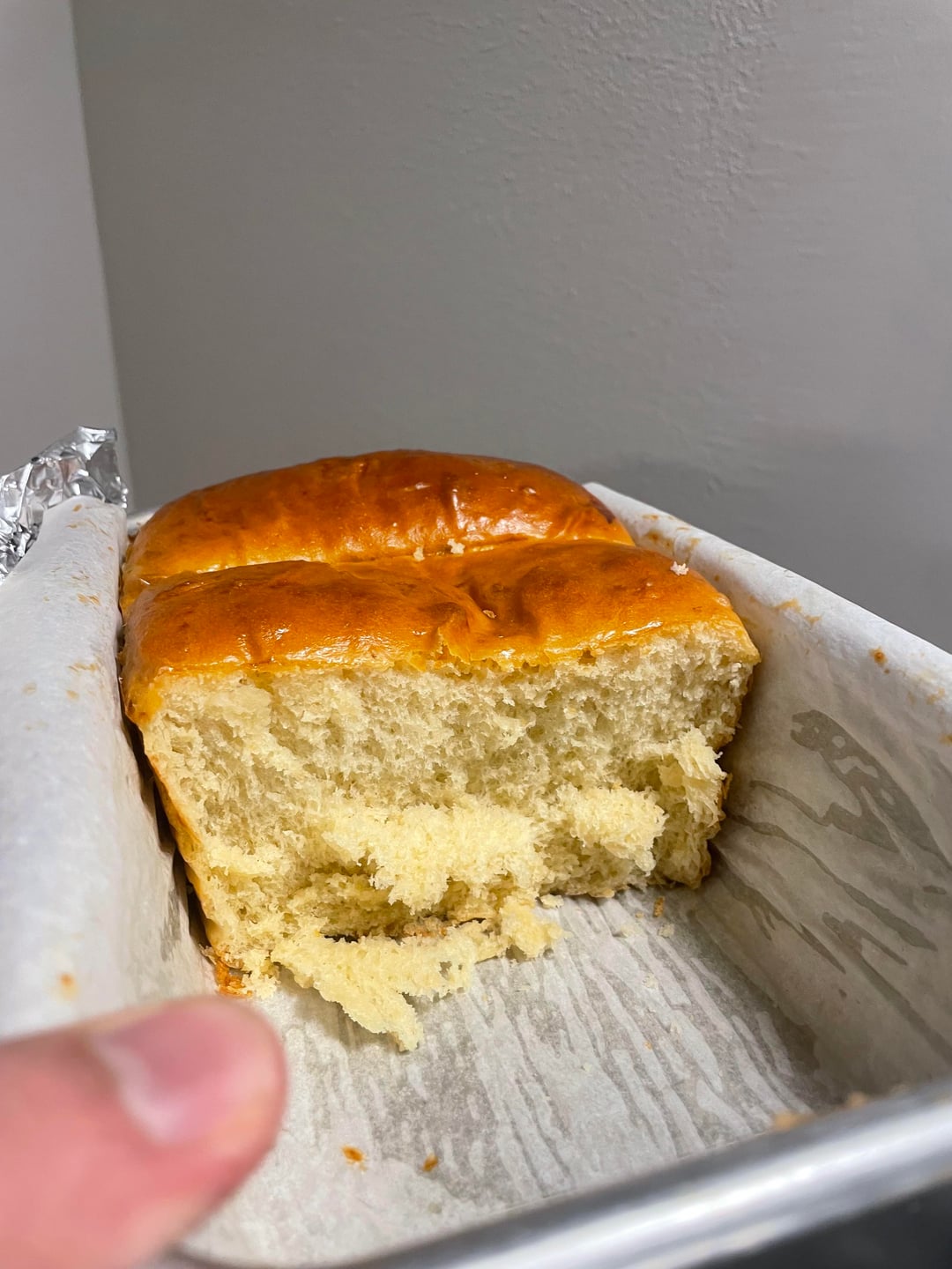 Two big things improved the dough: 1) I switched to bread flour. I’ve started preferring AP flour in my sourdough, and in my hubris I thought I could achieve the needed gluten in all my breads with AP flour. But even after switching back to bread flour, the crumb was still not soft enough. So 2) I halved the amount of butter. The butter really seemed to be disrupting the gluten. After both of those changes, the crumb looked much better. I’m sure with a stand mixer, people could achieve a really nice crumb with the normal amount of butter. But by hand this already took me hours of kneading and autolyzing between steps.
