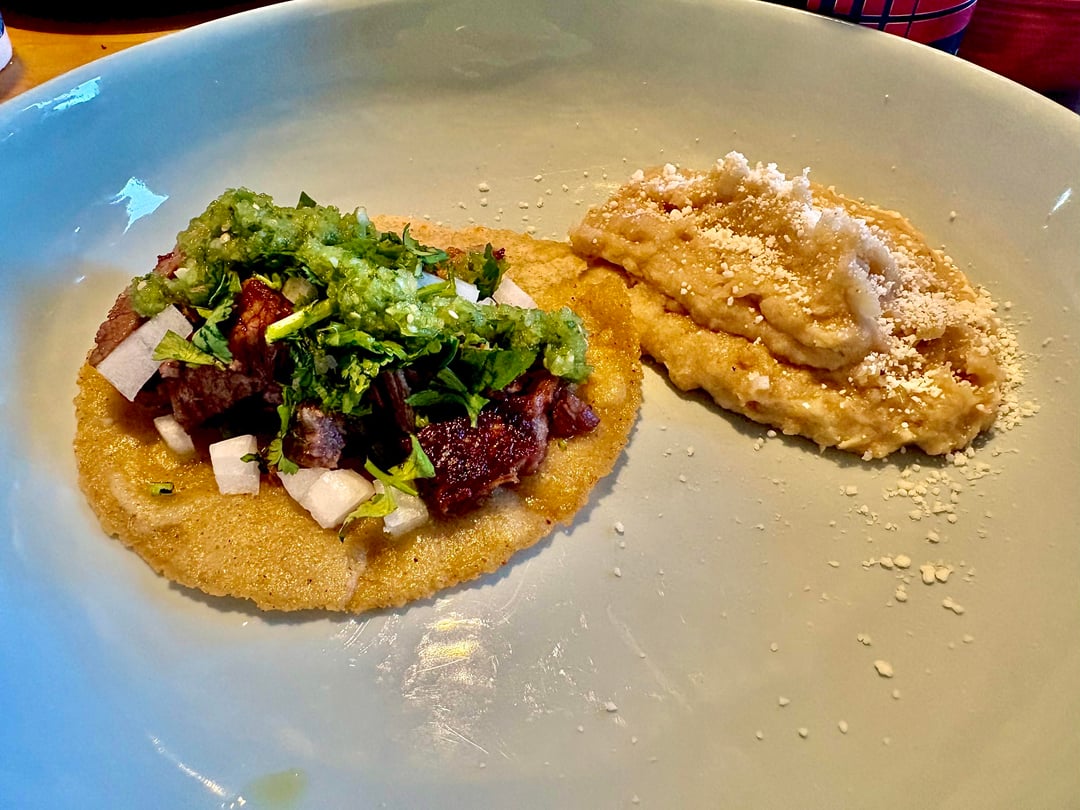 I couldn’t find the actual Suadero cut short notice so I got some brisket, cut it up, salted it heavily overnight, and confited it at 180F for 4 hours and the crisped it up on the plancha. I don’t own a choricera yet. Served with homemade white corn tortillas (that masienda black masa harina), salsa verde cruda with eoazote and some refried Chico blancos with the Manteca from the pan.