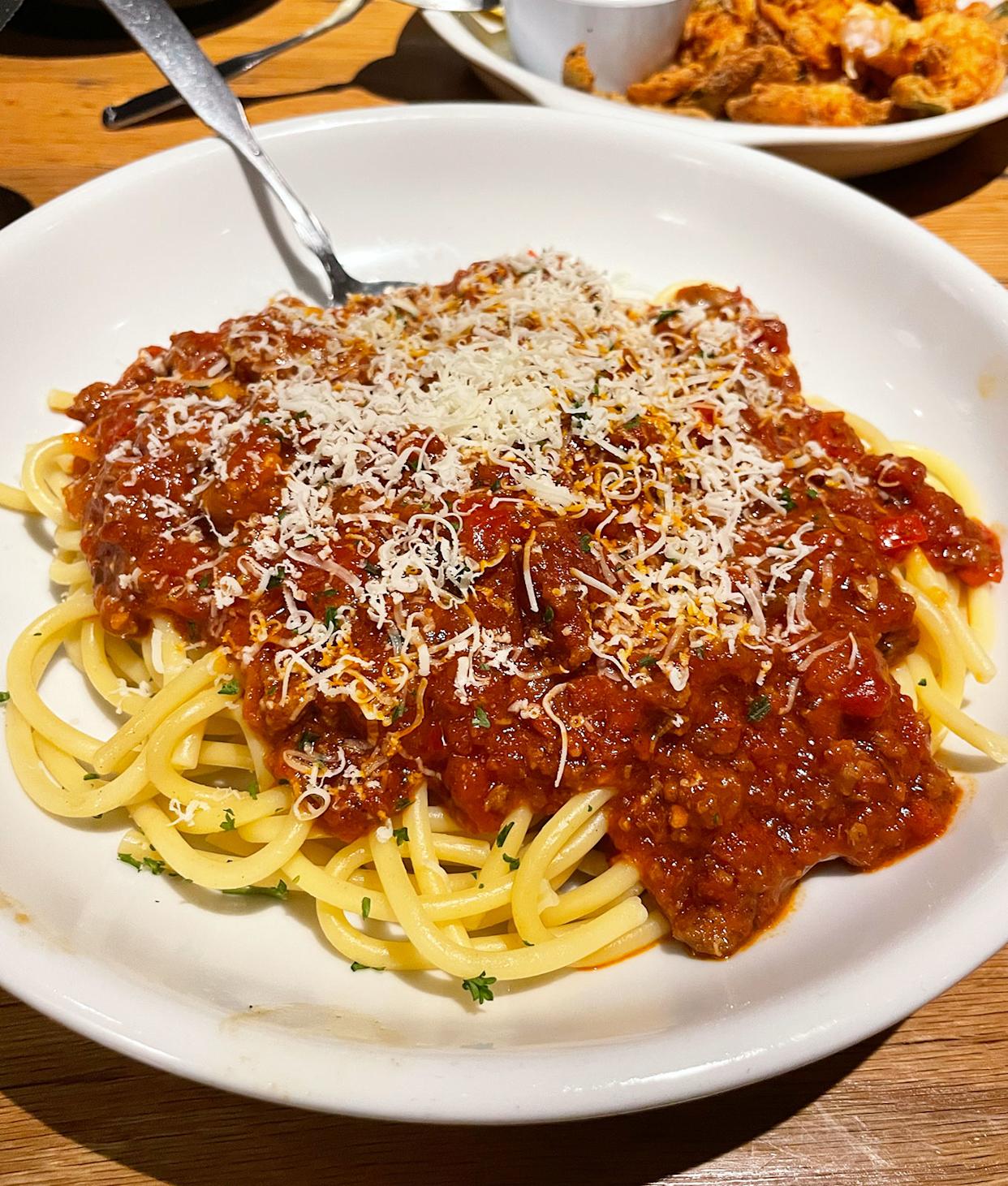 Real spice lovers will also want to make the most of their trip by trying the new-ish spicy three-meat sauce, too. It includes zesty pepperoni, cherry peppers, red bell peppers, chili flakes, red wine, garlic, herbs and Olive Garden’s signature meat sauce, made with ground beef and Italian sausage. Also available until August 24, the meat sauce is part of the chain’s Create Your Own Pasta (from $13) menu, which allows you to pair your favorite noodles and sauces for a customized dinner. (You can add veggies and proteins, like meatballs or chicken, to the plate too, if you’d like.)