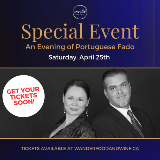 NOTE: The Fado performance will be divided into short sets with 15 minute breaks in between for guests to talk, relax and order more food and wine. It is customary and appreciated that guests are silent during the performance.