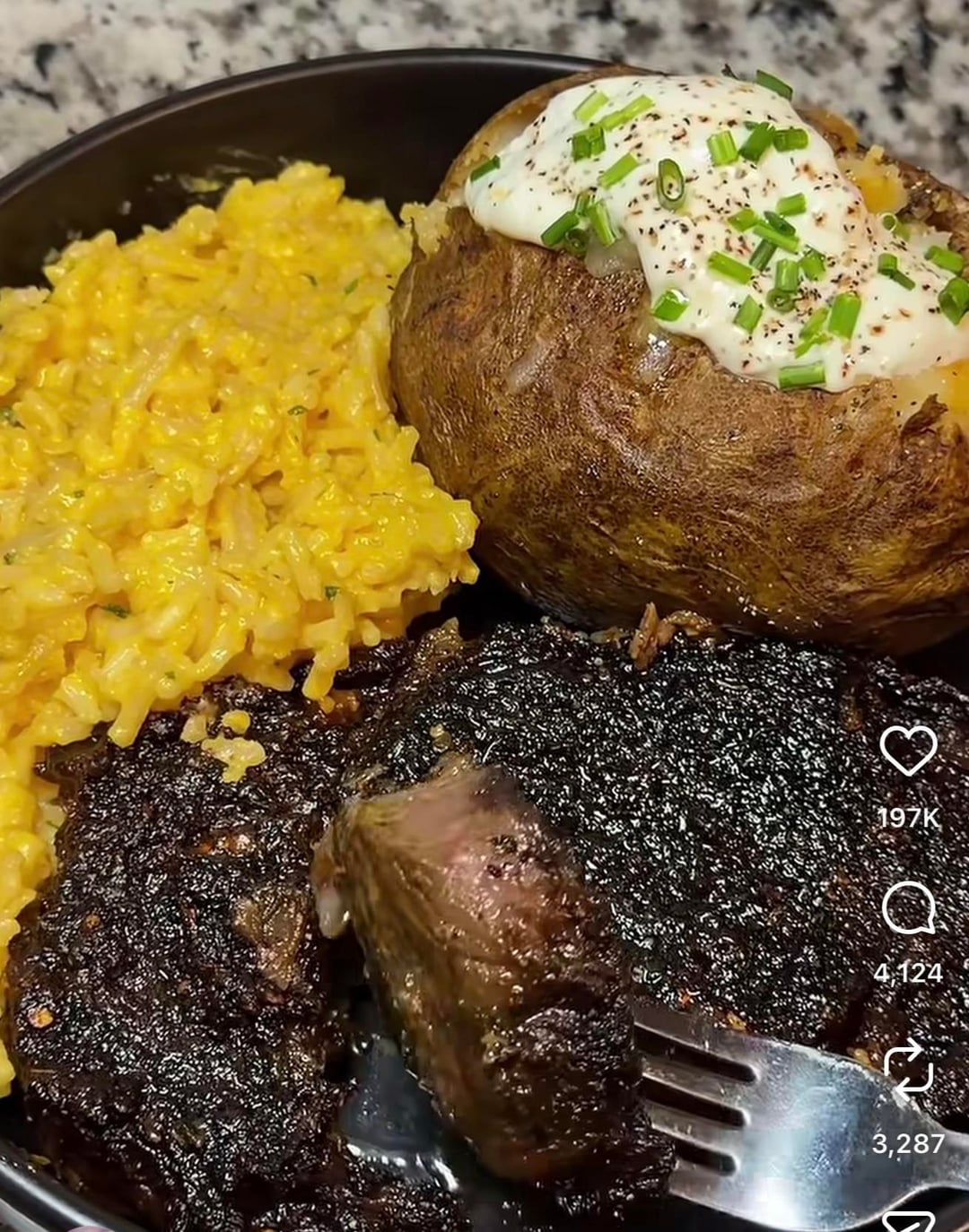 ** Edit:I need sleep. I only saw first picture and then I watched the video. First picture I thought it was a white plate and there was some straight up black juice under the steak. I see now, it’s a black plate with just steak juice glossing it lol. **