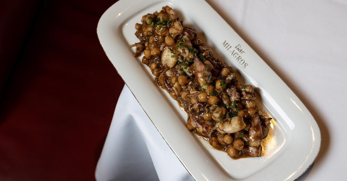 BarcelonaBar Milagros has a name from another era, but it’s a modern restaurant (with a menu and website in Catalan) that draws inspiration from France in its service and decor. On the table, you’ll find top-quality products, which you can even choose yourself from the display case showcasing the fish and seafood. The day I ate there, the case held cockles, razor clams, langoustines, mussels, and monkfish.