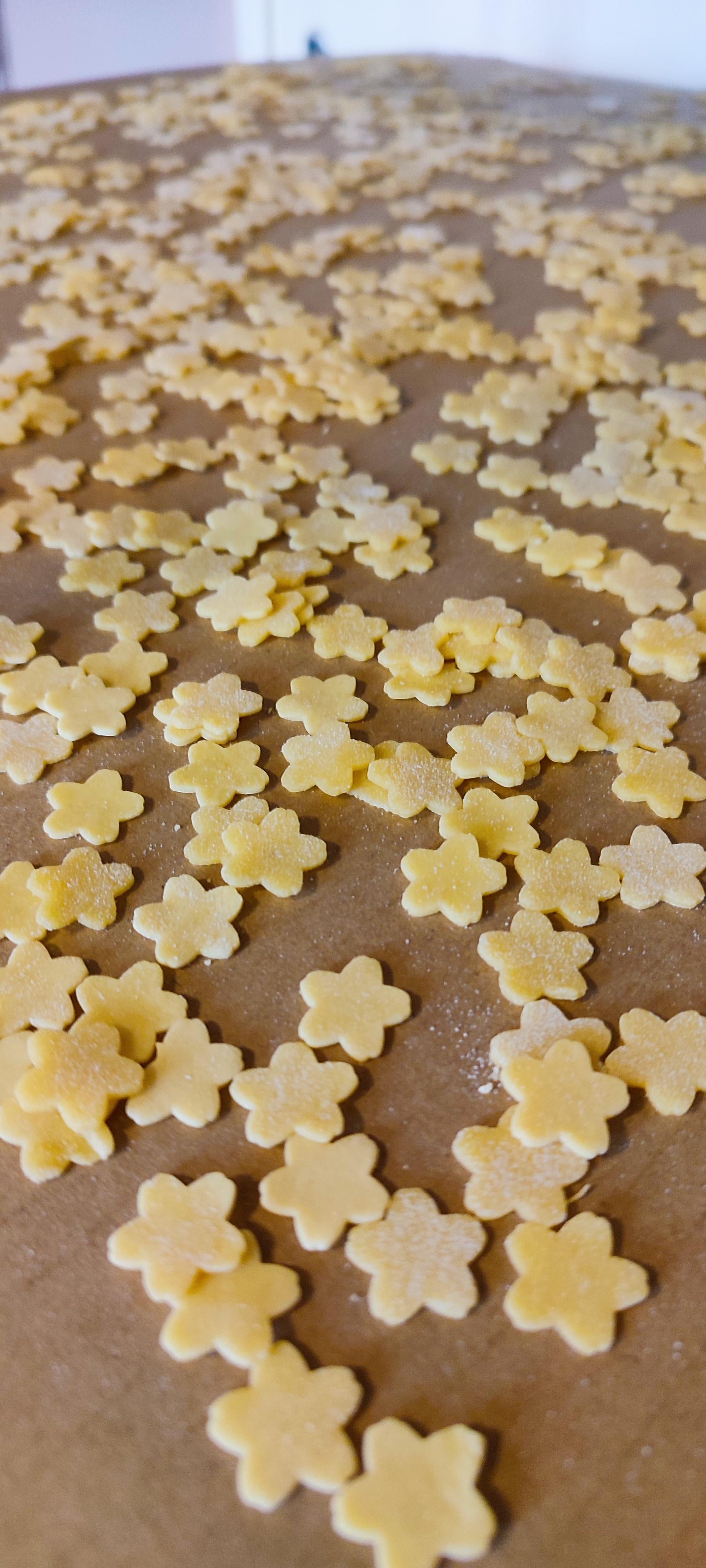 500g wheat flour, 5 fresh eggs, and 75g of my mature sourdough starter. Each little flower is hand-punched using a small craft cutter.🙂by Noreszko 5 Comments Viani__ 1 month ago  Aware_Acadia_7827 1 month ago does this need to sit for any length of time once combined? do you just roll out flat then cut? KitchenPumpkin3042 1 month ago Is the starter only for flavor then? radish_is_rad-ish 1 month ago so cute! Healthy-Pitch-4425 1 month ago Did you use the same cutter you can use to make flowers out of carrots or daikon radish? It’s pretty!