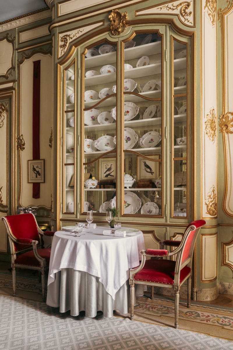 Across the Seine, Le Clarence asks the same question from the opposite end of the room. The address alone carries weight: a 19th-century private mansion, two Michelin stars, service so precisely choreographed it approaches something close to theater. This is haute gastronomy operating within its own codes — hushed, ornate, every movement considered.