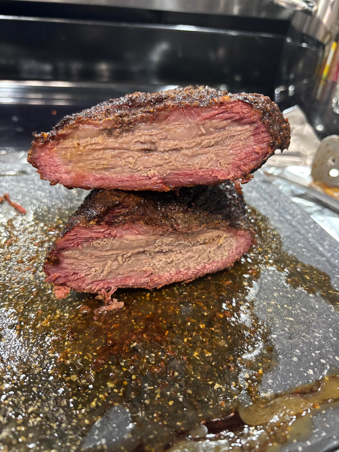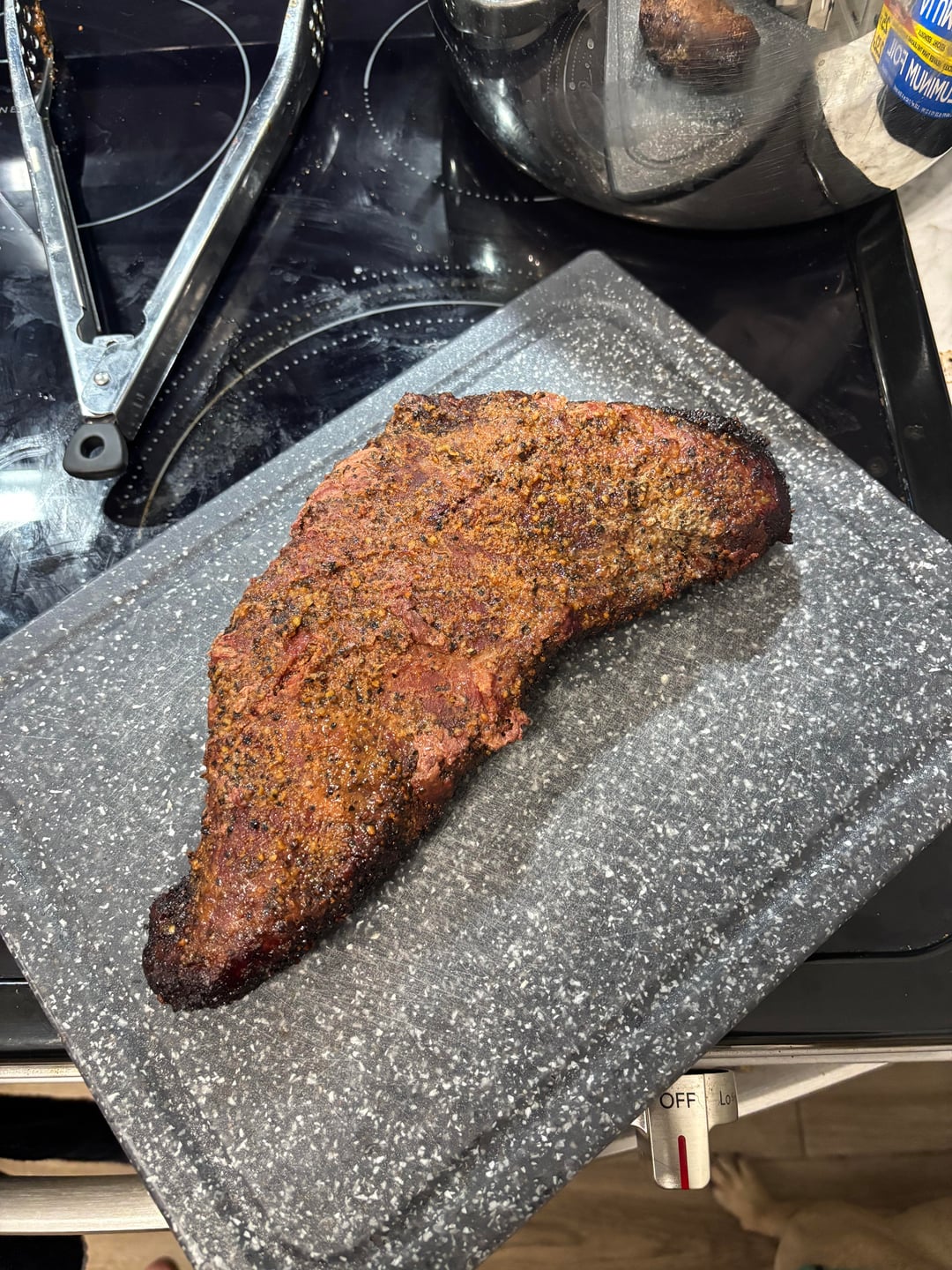Everybody on this sub prefers tri tip as a steak, but I can really get behind it as a brisket. Especially in my home,l where there’s only two of us, I don’t have to commit to a full brisket and have pounds on pounds leftover to freeze. Looks great man, enjoy!