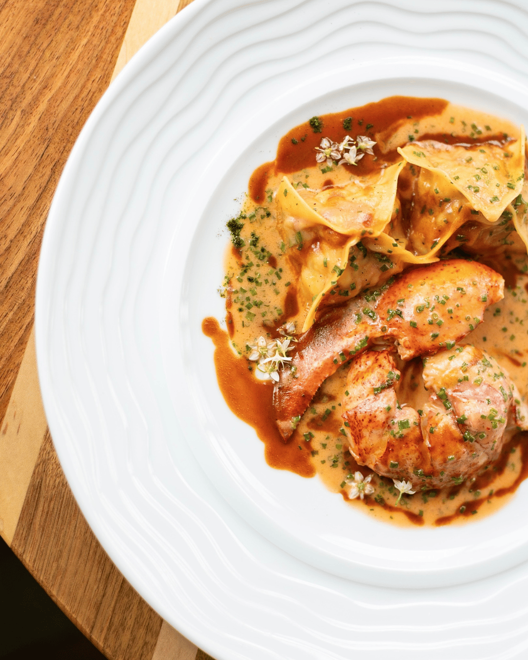 While agnolotti stuffed with tender short rib and Wagyu beef cheeks are a compelling detour for carnivores, lobster ravioli is the pasta signature—with good reason. Not only is the shellfish stuffed inside housemade dough pockets; the dish also arrives with plump pieces of tail and claw meat in an irresistible buttery ginger chive emulsion that could easily stand-in for velouté. (No judgment if you finish every last spoonful.)