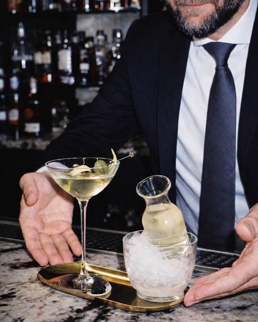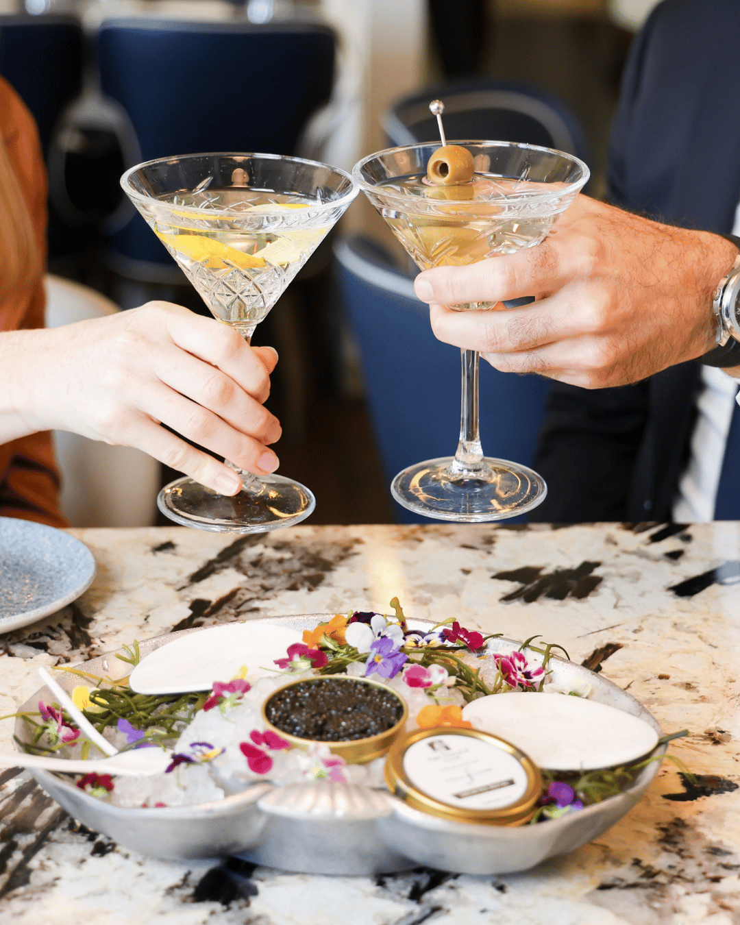 Martinis are the star of the beverage list, with several spendy yet ample pours touting intriguing flavor combinations, including oyster shell-infused gin stirred with herb- and citrus-tinged vermouth, and a riff on a Dirty Martini with olive oil-infused vodka and caper brine. All variations pair swimmingly with caviar service, seafood towers and the crudo menu. (Servers will thoughtfully strain the cocktails into two stems for sharing.) Spritzes and Gin & Tonics lean into the coastal vibe, while a brooding, barrel aged Manhattan appeals to the boozy & stirred crowd.