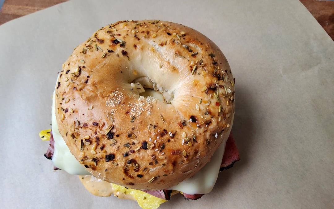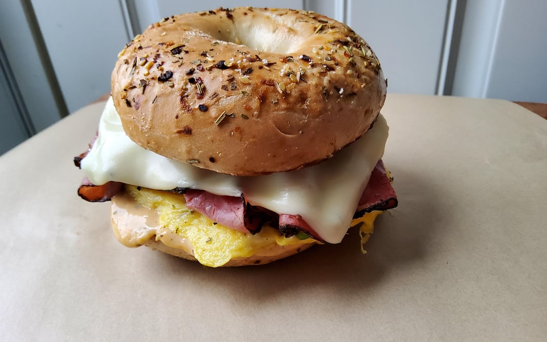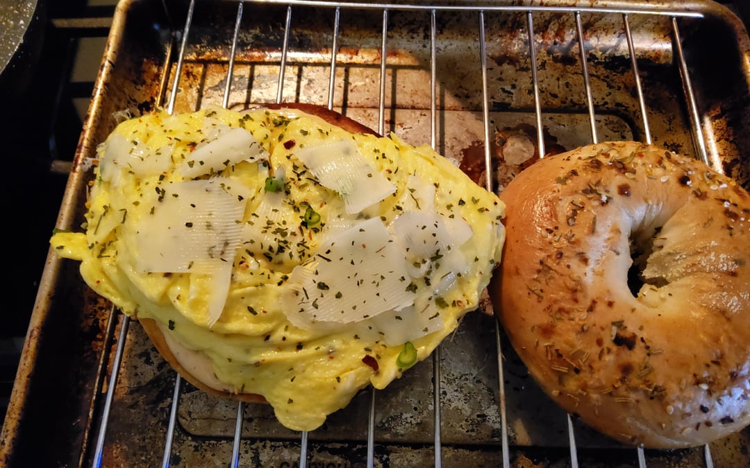 Share Facebook Twitter Pinterest LinkedIn Reddit Made a Bodega like breakfast sandwich for lunch. Pastrami egg cheese on focaccia bagel with special sauce. by mayiplease2564 Dining and Cooking