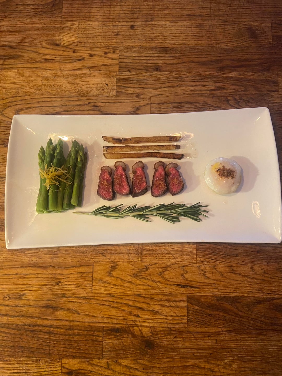 the proportions of the items on this plate are fascinating. like why the giant spring of rosemary and then exactly three fries