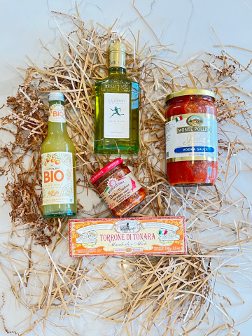 The mix of sweets and savories from Taste Italy Monthly includes non-perishable items, such as pasta, sauce, olives, nougats / torrone, chocolate, all-natural jams from Piemonte, organic sodas, aranciatas / limonatas from Sicily, extra virgin olive oil from Liguria, cookies/biscotti from Tuscany, organic pasta from Puglia and lots more.