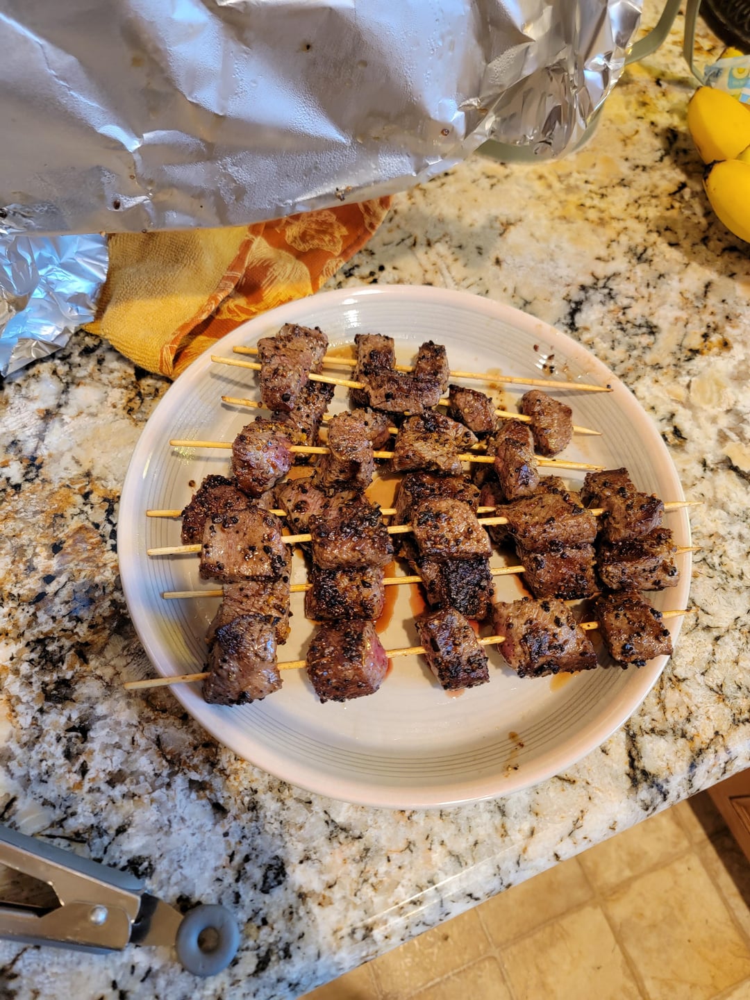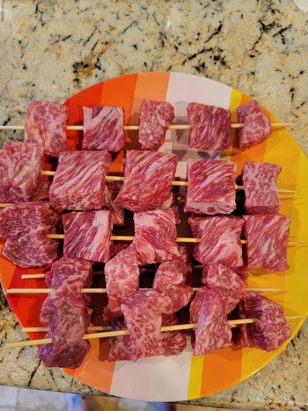 Made some skewers and some beef jerkey out of a couple of prime tri-tips from costco. Too pretty to pass up at 12.50/lb. Didnt get a pic before i cut them up unfortunately but marbling speaks for itself. Skewers with Montreal seasoning. Jerkey with kikoman teriyaki madinade.