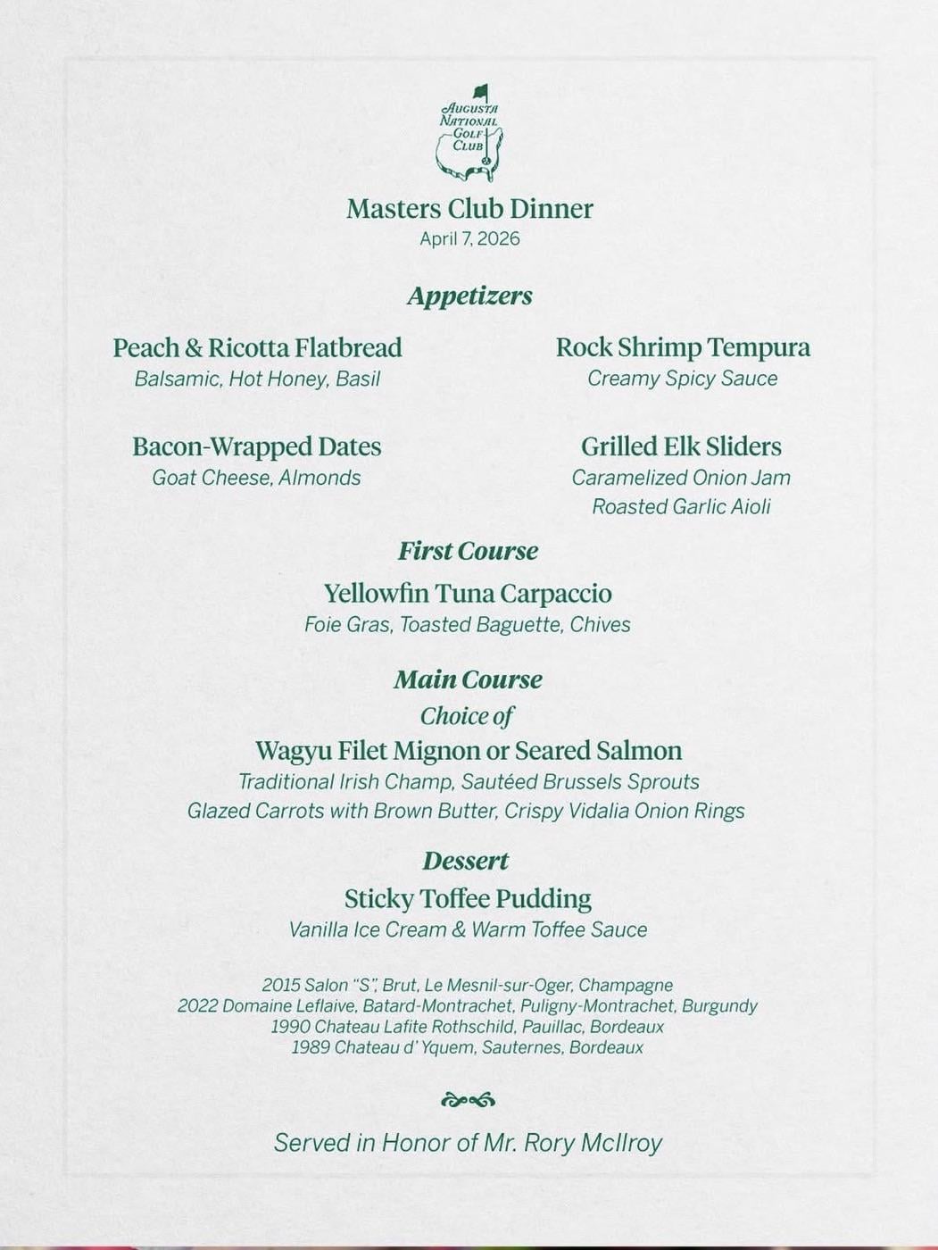 For the non golf fans… after winning the Masters, Shane Lowry his great friend, convinced the Augusta staff to release a case of wine from their library for a celebration at Rory’s place that evening. Lowry said he would pay whatever they wanted. While unusual, Augusta pulled a case out of their library. It was the 1990 Lafite Rothschild.