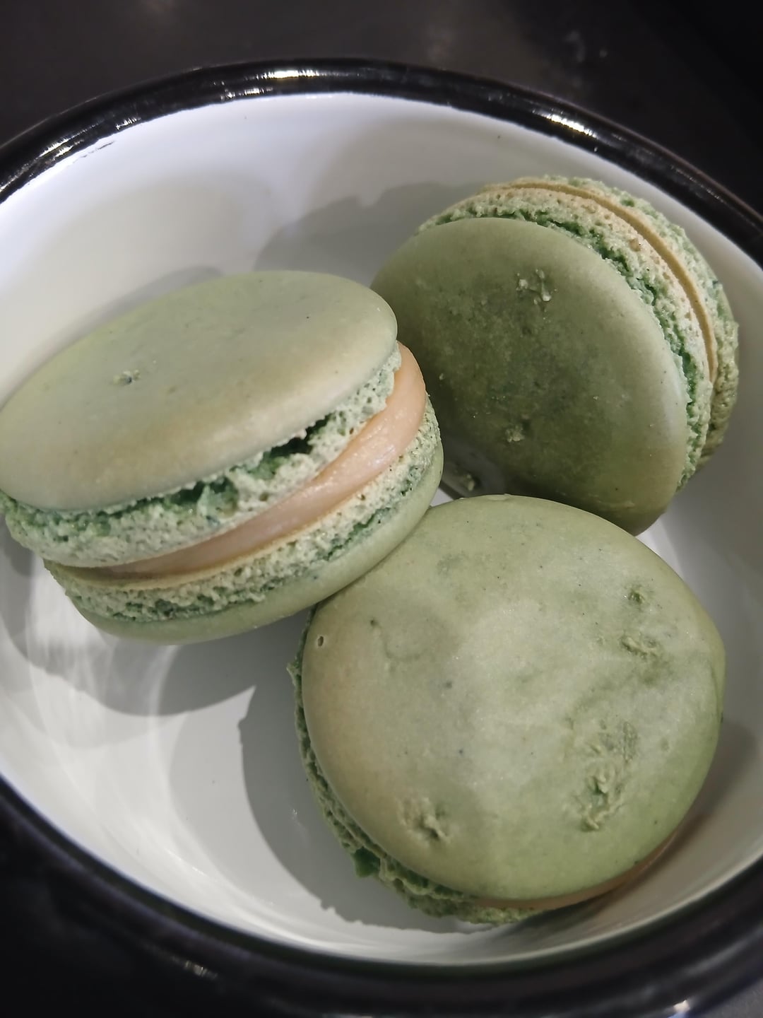 First and second picture – first attempt at macarons. Shells came out flat and a little hollow, tops being really fragile. I over mixed a little.
