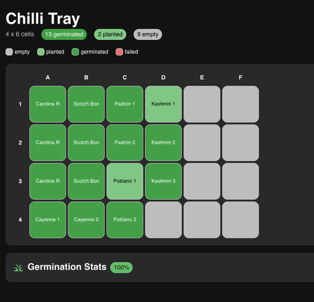 I only have two peppers yet to germinate based on my tracker I have one Kashmiri and one Pobalno waiting.