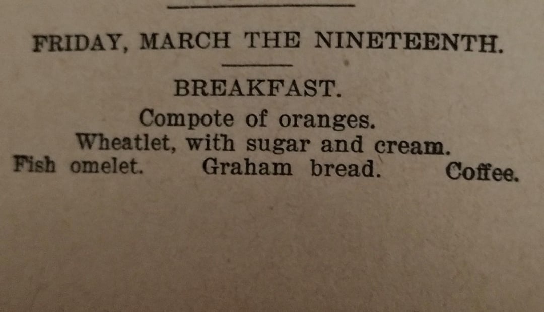 Cod’s not one of the fishes you usually have to worry about mercury content with, but with these menus often containing two fish meals a day I would suggest these folks keep an eye out.