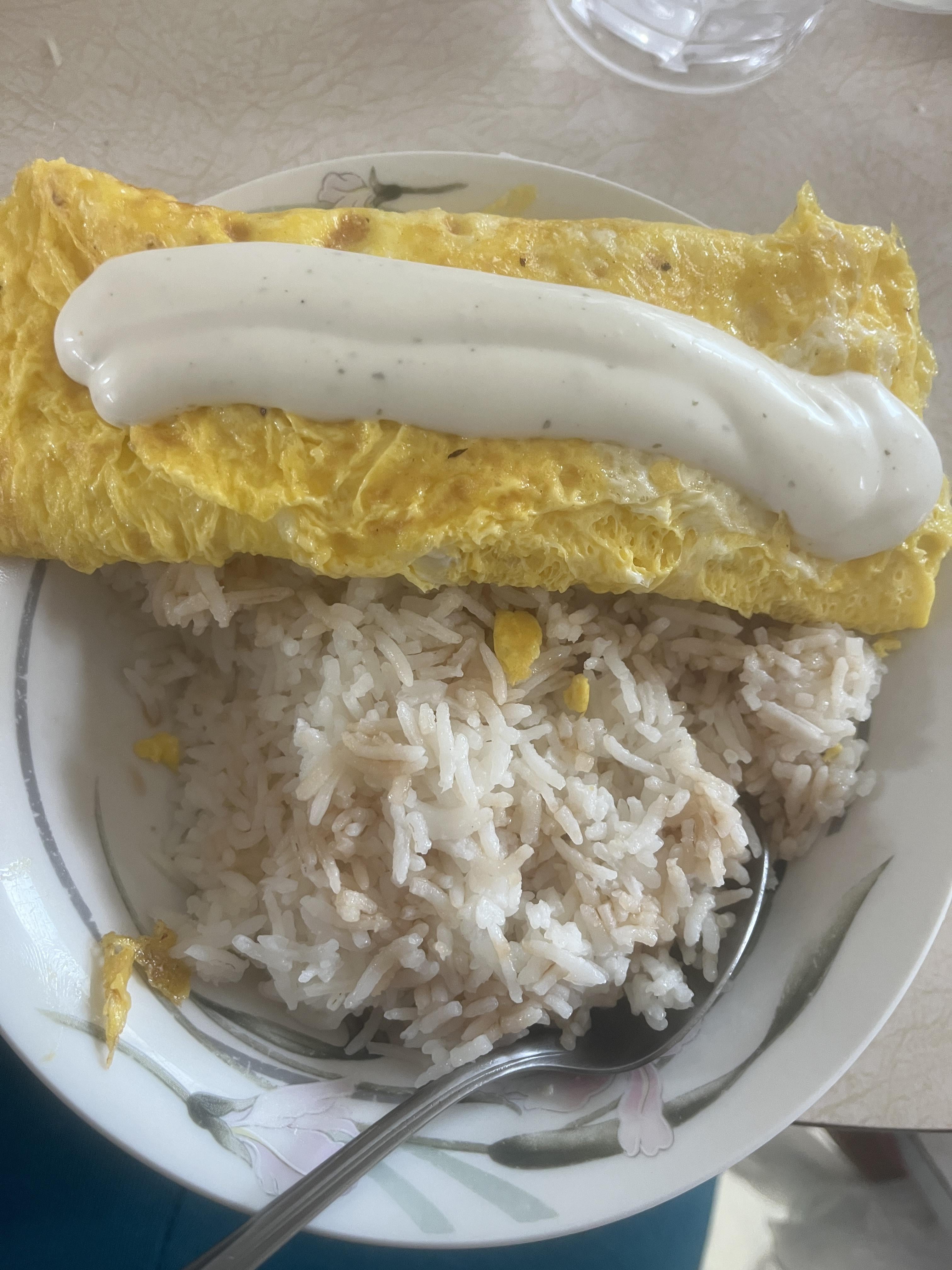eggs n rice is great. the ranch dick you squirted on there, not so much.